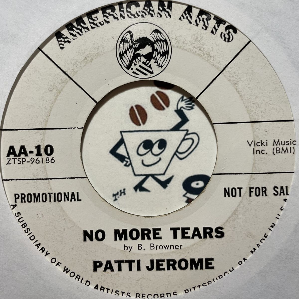 US NORTHERN SOULシンガーPATTI JEROMEの1964年AMERICAN ARTSレーベルプロモSEVEN INCシングルNO MORE TEARS。UP-BEATでグイグイ攻め込む激踊り必至のMOD-NORTHERN!!!ブリブリのホーン&ハンドクラップのお誘いは一切断らない主義です。
