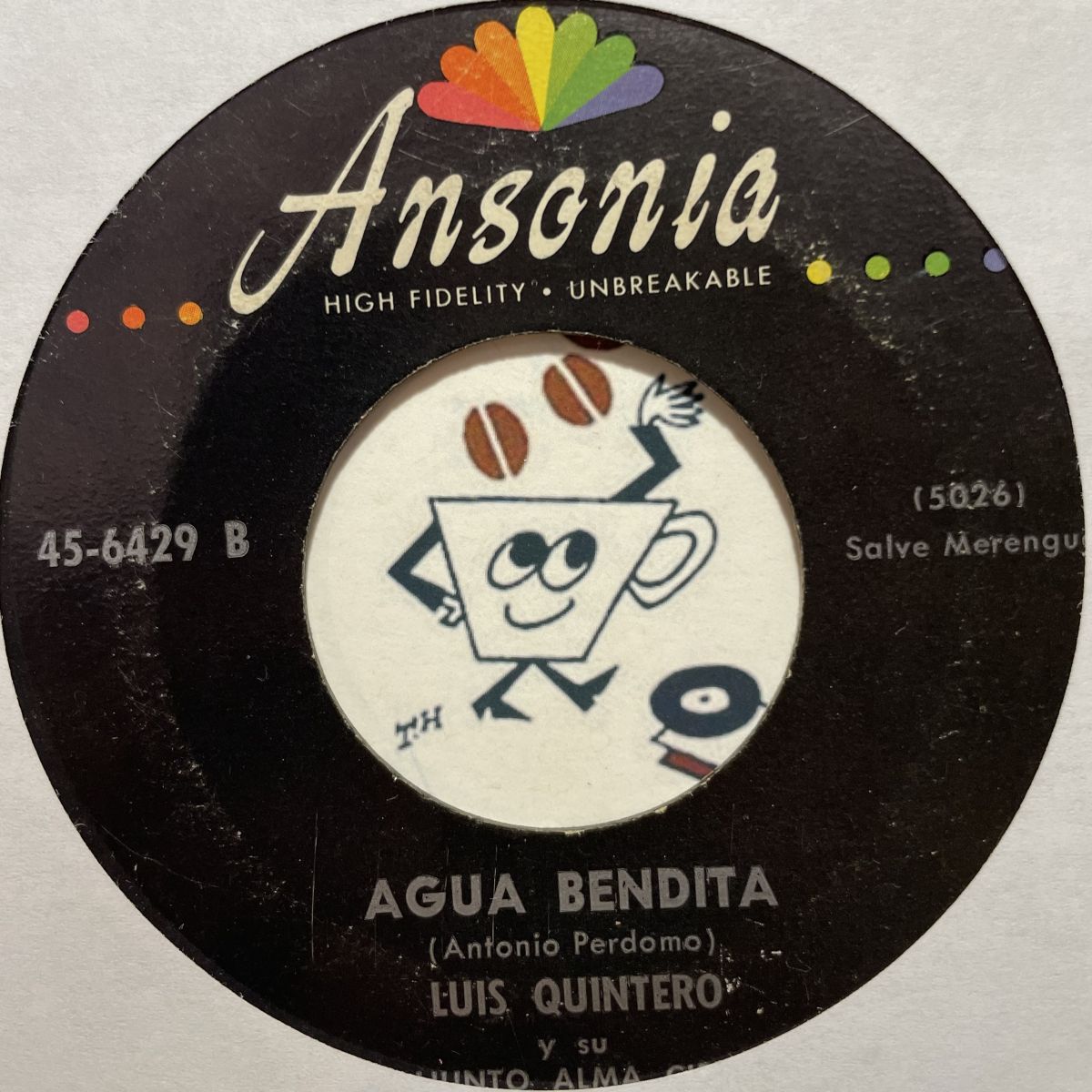 打楽器奏者バンドリーダーLUIS QUINTEROが率いたドミニカ共和国のCALYPSOメレンゲバンドCONJUNTO ALMA CIBAENAの1963年アルバムMERENGUES VOL.4から収録曲AGUA BENDITAを抜粋したANSONIAレーベルリリースSEVEN INCシングル盤。SEVERA、LA PESADILLA、QUE PAQUETON、DON SIMONやPAN CALIENTEとコレぞドミニカ産メレンゲの大充実アルバムにナゼがポツンと1曲収録されてしまった煽り系CUMBIAノリの突然変異曲AGUA BENDITAが店主待望のオーパス世界初上陸でございます!!!!!このシングルの発掘はLP持ってる又は聴いた事のある皆さまは九分九厘の確率で大喜びでございましょう。