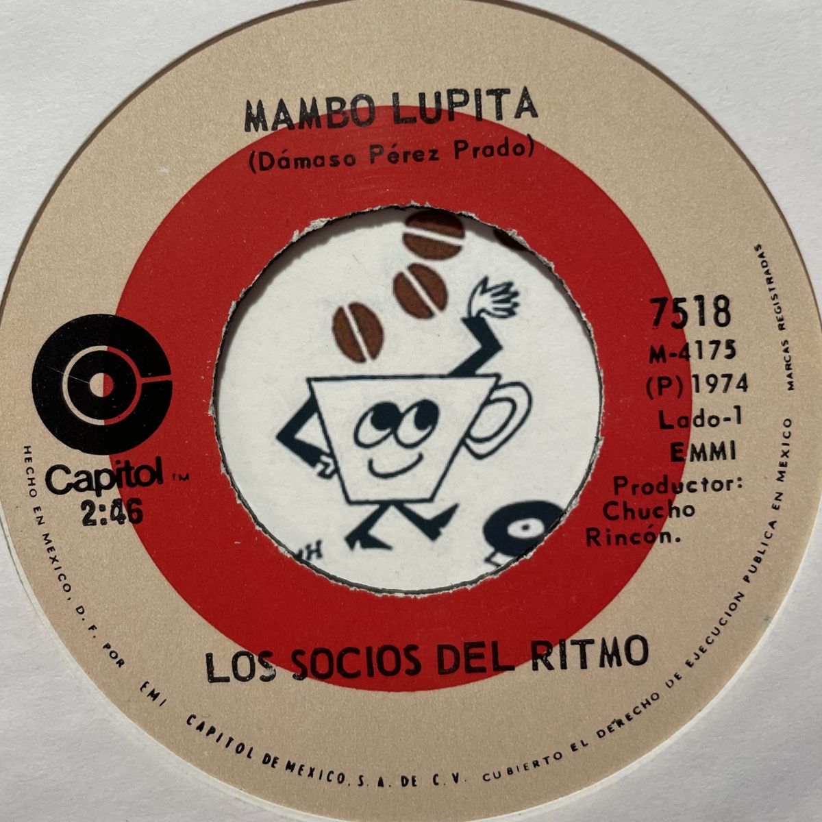 MEXICOのLATIN TEX-MEXバンドLOS SOCIOS(DEL RITMO)の1974年CAPITOLレーベルリリースSEVEN INCシングルMAMBO LUPITA。TEX-MEXバンドがCUMBIAやMAMBOを解釈し奏でたカバーが個人的にツボで、彼らのベスト盤BEST VOLUMEN NO.4を長年愛聴致しておりますがコチラMAMBO LUPITAが断トツの味わいです。タイトル通りMAMBOキングことPEREZ PRADO作の一撃MAMBO LUPITAをズレてる店主好みなフワッフワのCUMBIAアレンジで好カバー!!!!お酒がススむ店主自慢のひと品でございます。呑みねェ