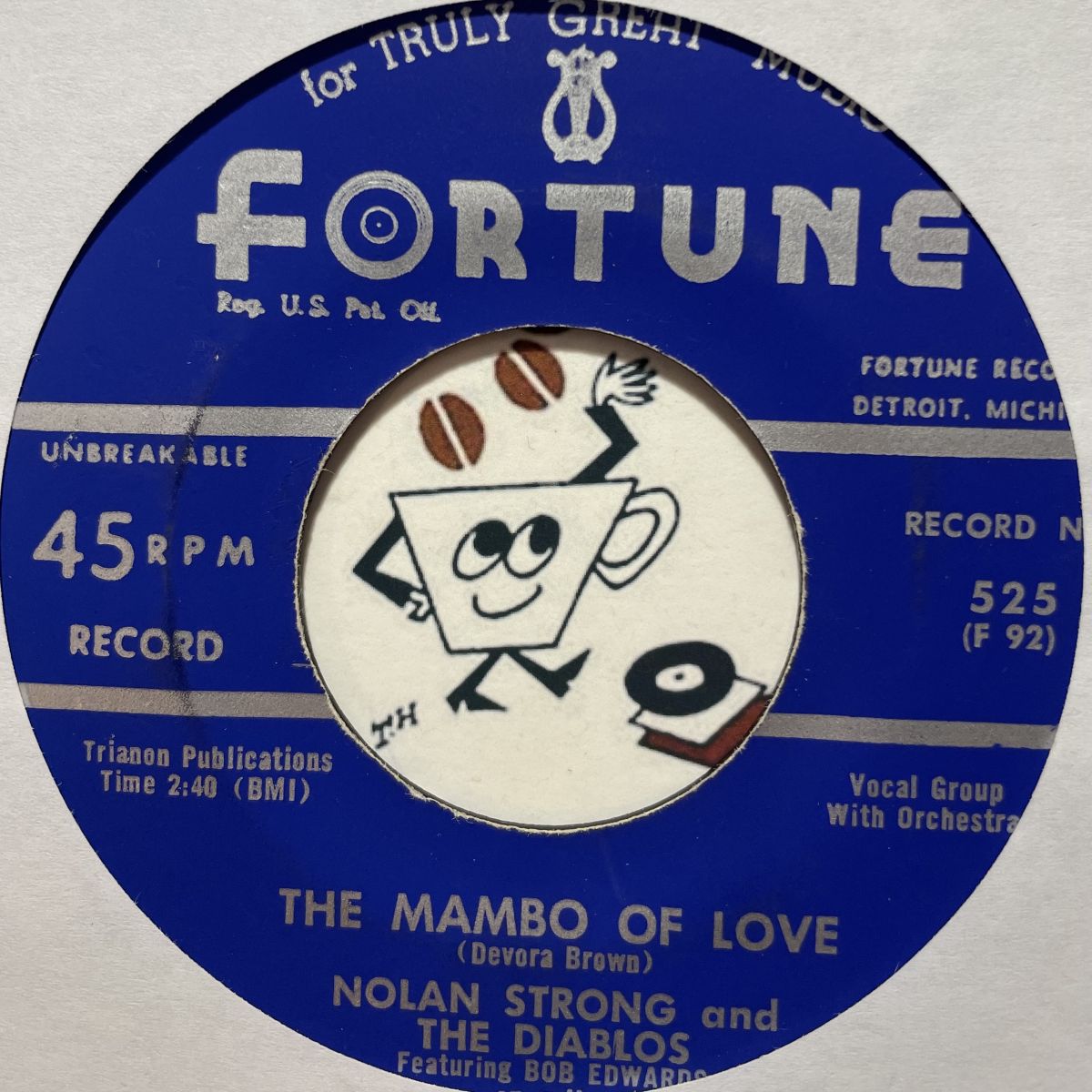 USデトロイト発R&B DOO-WOPグループNOLAN STRONG AND THE DIABLOSの1959年FORTUNEレーベルリリースSEVEN INCシングルTHE MAMBO OF LOVE。MAMBO過ぎない穏やかな木漏れ日カリビアン仕立てってトコロとしなやかなVOCAL風情が実にオレ好みなのさッ!!!お聴きの通りDON LANEのTHE CHA-CHA OF LOVEカバーで、オリジナルは当たり前ですが同曲カバーMARSHA RENAYのCHA-LYPSO OF LOVEも全部揃えたいねェ持ってたいですよねェ欲しいよね~ッ!!!だって男の子なんだモン。