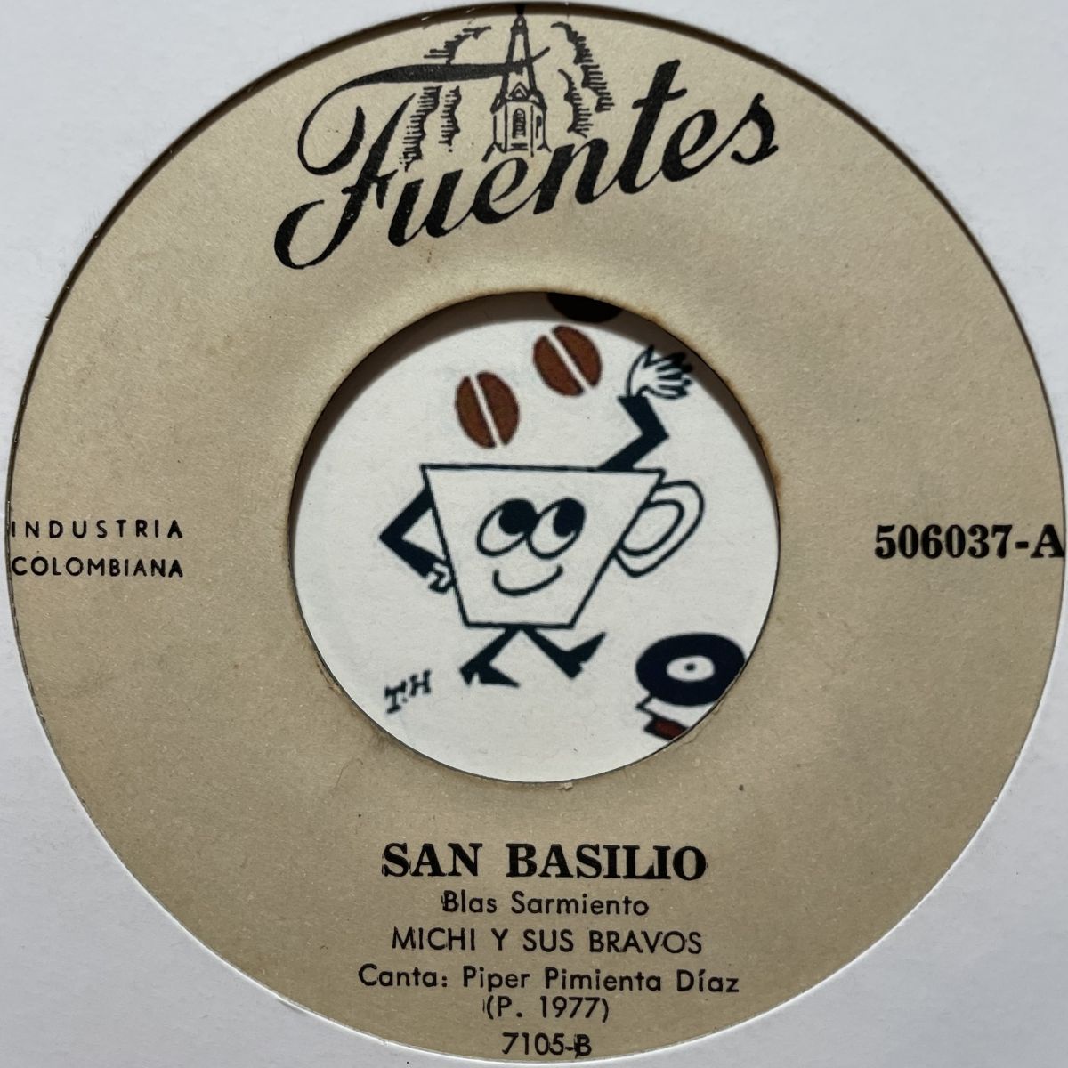 エキゾFUNK-CUMBIA芸者ガールHONG KONGで既におなじみ南米コロンビア伝説のバンマス兼サックス奏者MICHI SARMIENTO率いるMICHI SARMIENTO Y SUS BRAVOSの1977年SEVEN INCシングルSAN BASILIO。縦に煽る威勢の好いBEAT、バブリーホーンと終始ワックワクする花びら大回転サービスがフロアの踊り子達のテンションを沸点迄上昇させますよッ!!!ヴィンテージLATIN好きは勿論SALSAマニアや密林AFROサイケ好き筋金入り猛者さまをも陶酔させる唯一無二のMICHIクオリティーですね。
