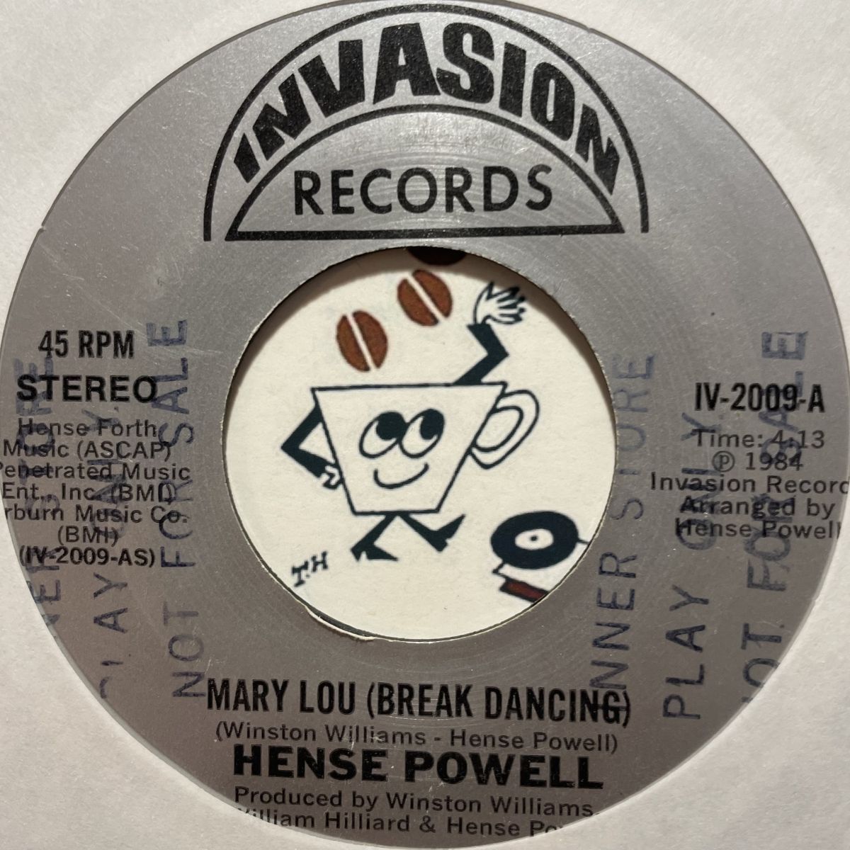 USセッションミュージシャンキーボード奏者兼音楽プロデューサーHENSE POWELLの1984年INVASIONレーベルリリースSEVEN INCシングルMARY LOU。見事に3周回って巡ってきたダサさが超カッコイイSPACYディスコBREAKS!!!特にインストVERSIONのDUBさ加減がお気に入りです。12INCはまだまだ問題なく出会えますが、SEVENシングルは既に厳しくなってきておりますのでこの機会に是非ともねッ