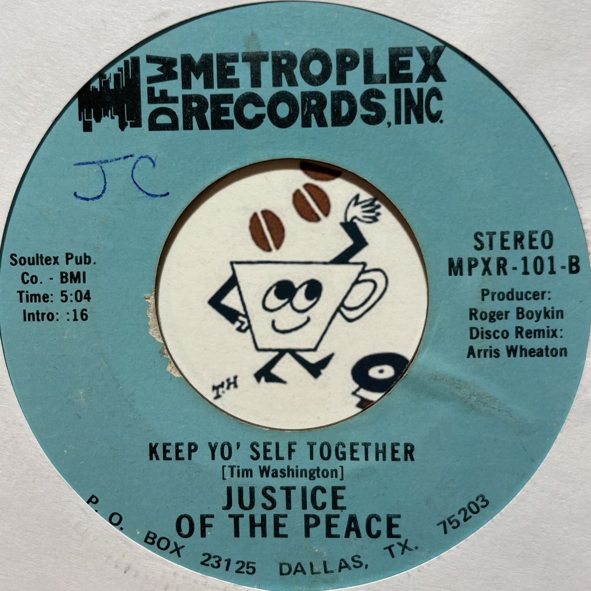 US NORTHERNソウルFUNKバンドJUSTICE OF THE PEACEの1976年METROPLEXレーベルリリースSEVEN INCシングルKEEP YOURSELF TOGETHER。ブリブリ暴走ホーンと切れ味鋭いタフBEATで完走するTIM WASHINGTON作KEEP YOURSELF TOGETHERカバーのフロア映えっぷりを是非ご自身の眼でお確かめ下さいなッ!!!!!年末年始は特に際立ちますよ。
