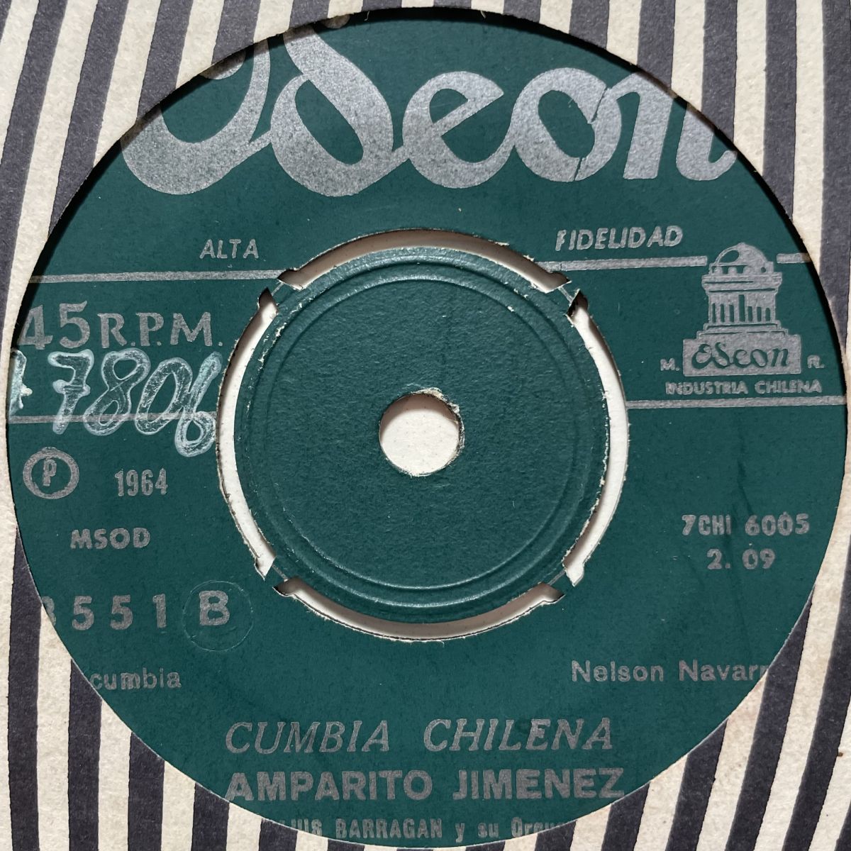 南米コロンビアのクンビア舞曲歌手殿堂AMPARITO JIMENEZのLUIS BARRAGANオーケストラを従えた1964年チリ録音ODEONレーベルリリースSEVEN INCシングルCUMBIA CHILENA。若かりし日の名演PEPEがコンピにPICK-UPされておりますが、コチラCUMBIA CHILENAも女盛り爛漫時のチリ遠征音源でございますねッ!!!!!期待通り貫録のセピア色ヴィンテージCUMBIA花道でございますねッ