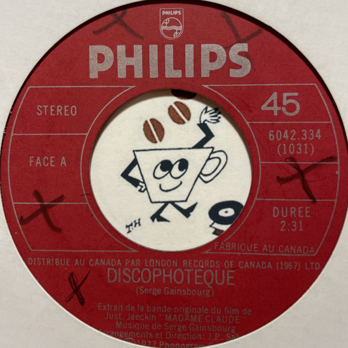 全世界男達の憧れSERGE GAINSBOURGが楽曲を手掛けた1977年フランス映画MADAME CLAUDEサウンドトラックから収録曲DISCOPHOTEQUEを抜粋した1977年CANADA PHILIPSレーベルONLYリリースSEVEN INCシングル盤。個人的にこのサントラ中で最も好きな曲でしかもSEVENシングルはカナダONLYプレスでございますからボクは出会えば即飛び付いております!!!勿論とっても極RAREなので8年振りの快挙でございます。和モノやブギーFUNK辺りと相思相愛、まさに今時の音でしょッ