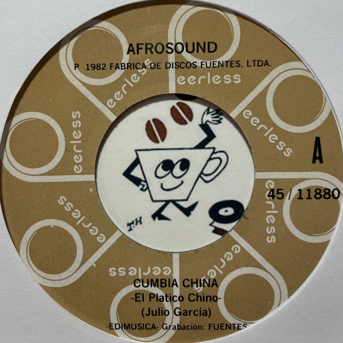 JUNGLE FEVER、CUMBIA-ETやCALIVENTURA等々FUNKYクンビアCHICHAトラックの宝庫、枯れない泉LATINグループAFROSOUNDの1982年PEERLESSレーベルリリースSEVEN INCシングルCUMBIA CHINA。タイトル通り中華風味の音色がキラキラ彩る異国情緒たっぷりのある意味とんでもなくキラーな飛んでCUMBIA CHINA、サイケデリックCHICHA花道SALOME共にAFROSOUND節の効きマクった場末サイケWサイダーでございますッ!!!