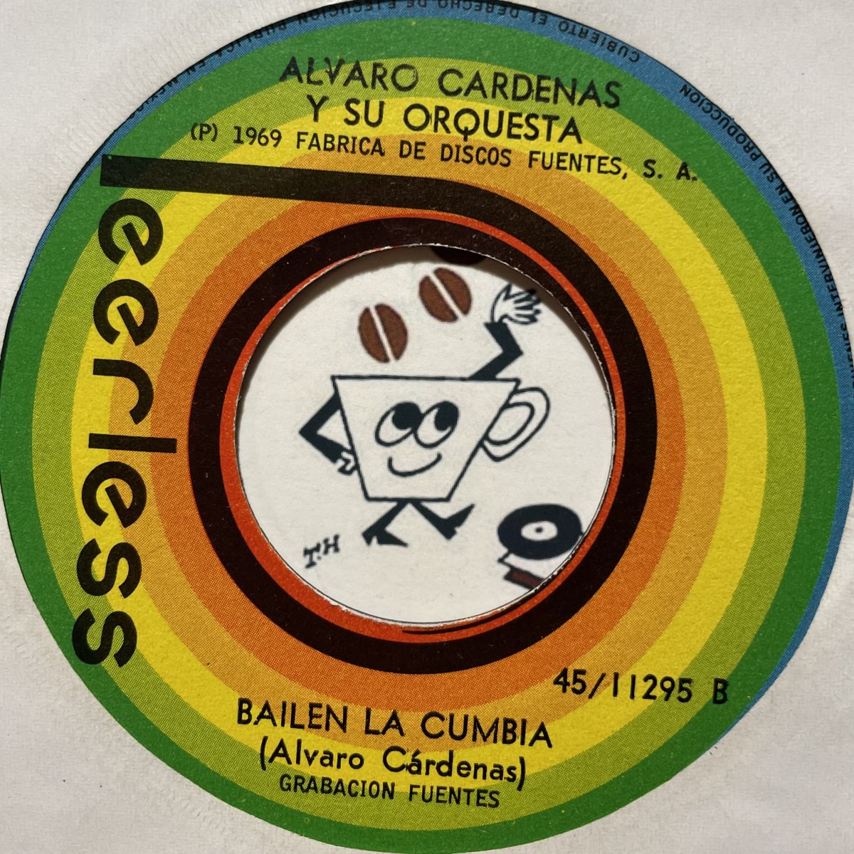 南米コロンビア作曲家RODOLFO AICARDIが率いた大所帯LATIN-VOCALIESグループ老舗RODOLFO CON LOS IDOLOSの60SヴィンテージFUENTESレーベルリリースSEVEN INCシングルLA SECRETARIA。70SアルバムIDOLO CON LOS IDOLOSに収録されておりますからソレで既に満足って皆さまはさて置き、縦に煽る系の混血CUMBIAミクスチャLA SECRETARIAの事が3度の飯よりも大好きなアナタとそこのアナタとオレは飛び付いて問題ナシッ!!!!!何だか芯が太くて横隔膜が揺れるこの感覚、代表して同タイトル中屈指の名演だと断言させて頂きます。(OPUS調)