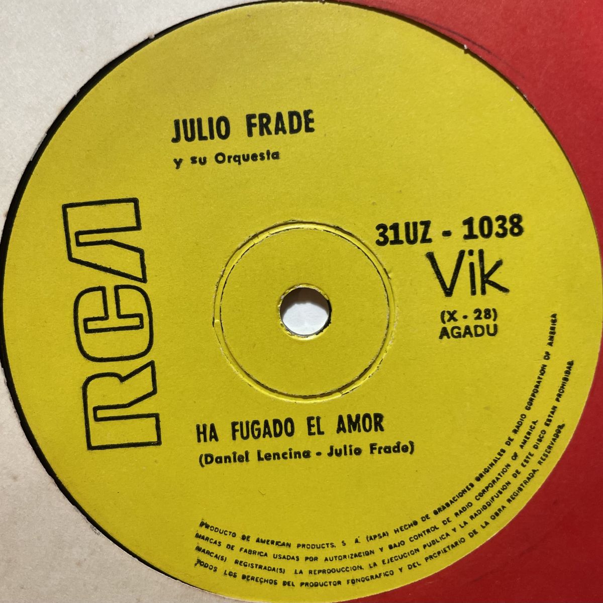 ウルグアイ出身の鍵盤奏者コメディアン俳優JULIO FRADEの1970年RCAレーベルリリースSEVEN INCシングルHA FUGADO EL AMOR。JULIO FRADEがどんな芸人なのかは全く興味がないのですが、アルゼンチン出身のマイフェイバリット作曲家DANIEL LENCINAが音楽を手掛けたとなれば興味津々!!!!!DANIEL LENCINAでハズした事のないオーパス店主が自信満々で推させて頂くきます。中盤からのゴージャスバブリーな跳ね具合は流石DANIEL LENCINAでございます!!!