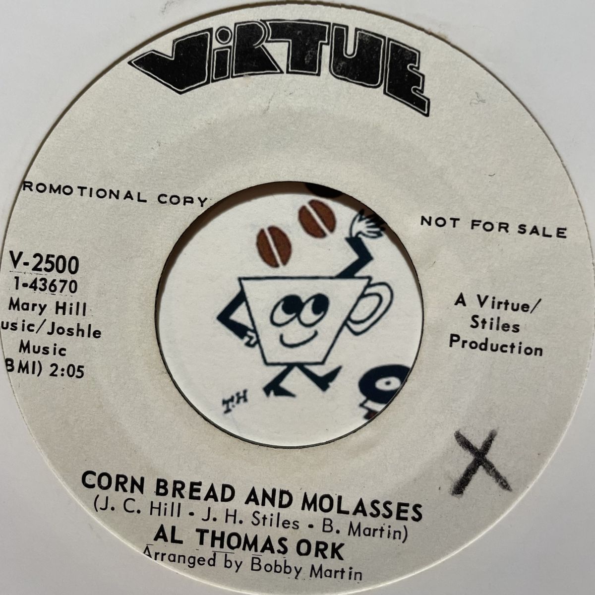 US SOULシンガーソングライターALBERT THOMAS率いるALBERT THOMAS ORKの1967年VIRTUEレーベルプロモSEVEN INCシングルCORN BREAD AND MOLASSES。先ずイントロの高揚感に心奪われる堅くて太いNORTHERNファンクBREAKS必需品CORN BREAD AND MOLASSES、そのVOCALテイクI HAD GOOD THINGがカップリング曲でございますッ!!!年末なので気分的に今はインストVERSION推しかなッ