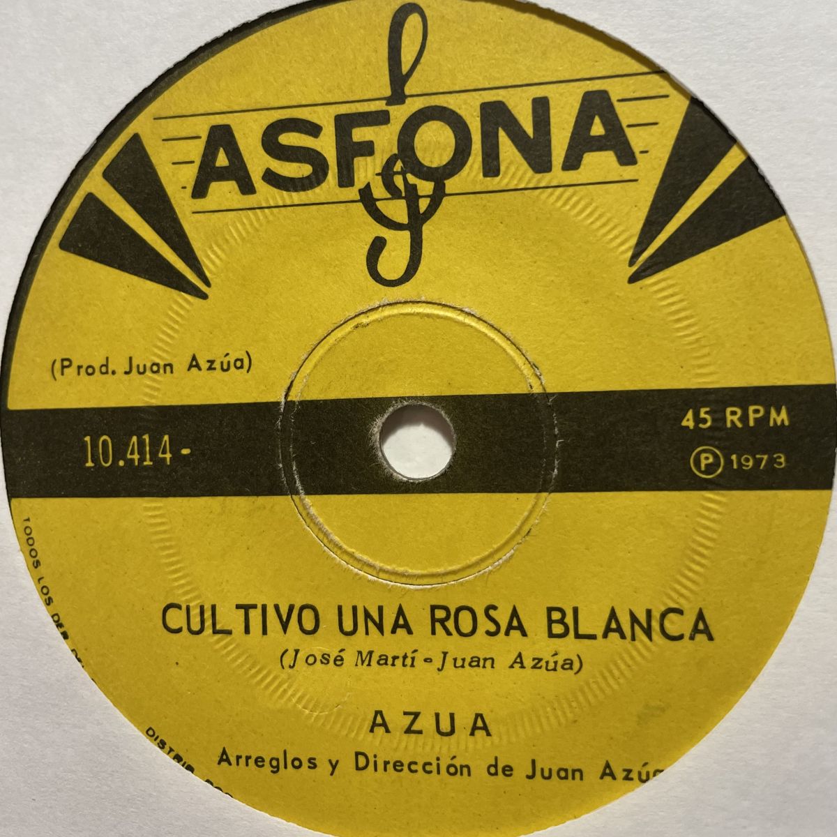 南米チリの作曲家オーケストラ指揮者JUAN AZUAの1973年ご当地ローカルASFONAレーベルリリースSEVEN INCシングルCULTIVO UNA ROSA BLANCA。コロンビア雄BLACK SUGAR盤石の王座をも揺るがす危険極まりないグッツグツに煮え滾る密林サイケLATINファンクCULTIVO UNA ROSA BLANCAをスルー出来る北斗の拳愛読者は皆無でしょうッ!!!高額盤ですからね苦渋の選択で諦めようと思った皆さまはカップリング曲MONTANA DE SOLEDADを聴いて考えを改めて下さい!!!!!!こんなモンスター級ダブルサイダーには人生で何度もは出会えませんからねッ