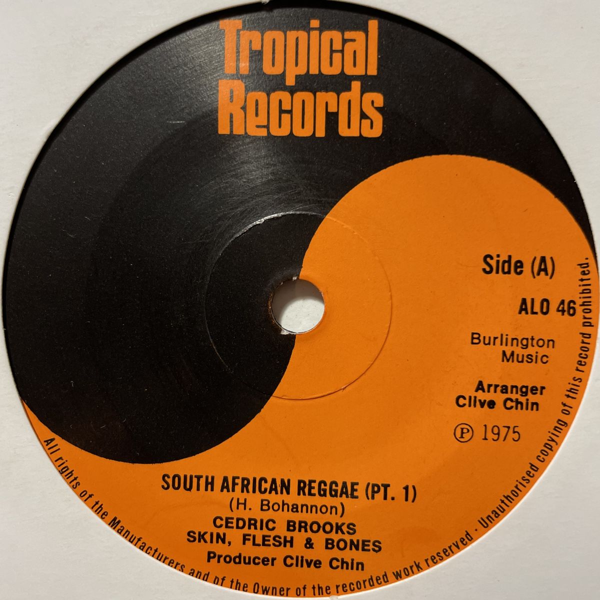JAMAICAサックス奏者兼アレンジャーCEDRIC BROOKSの1975年UK TROPICALレーベルリリースSEVEN INCシングルSOUTH AFRICAN REGGAE。タイトル通りUSソウルシンガーHAMILTON BOHANNONのSOUTH AFRICAN MANのカッコイイREGGAEカバーで、ご法度&禁断の本家超えでございますねッ!!!ブリッブリSAXが鳴き散らかしBLOWしまくるコレぞFUNKY-REGGAEでございましょうッ