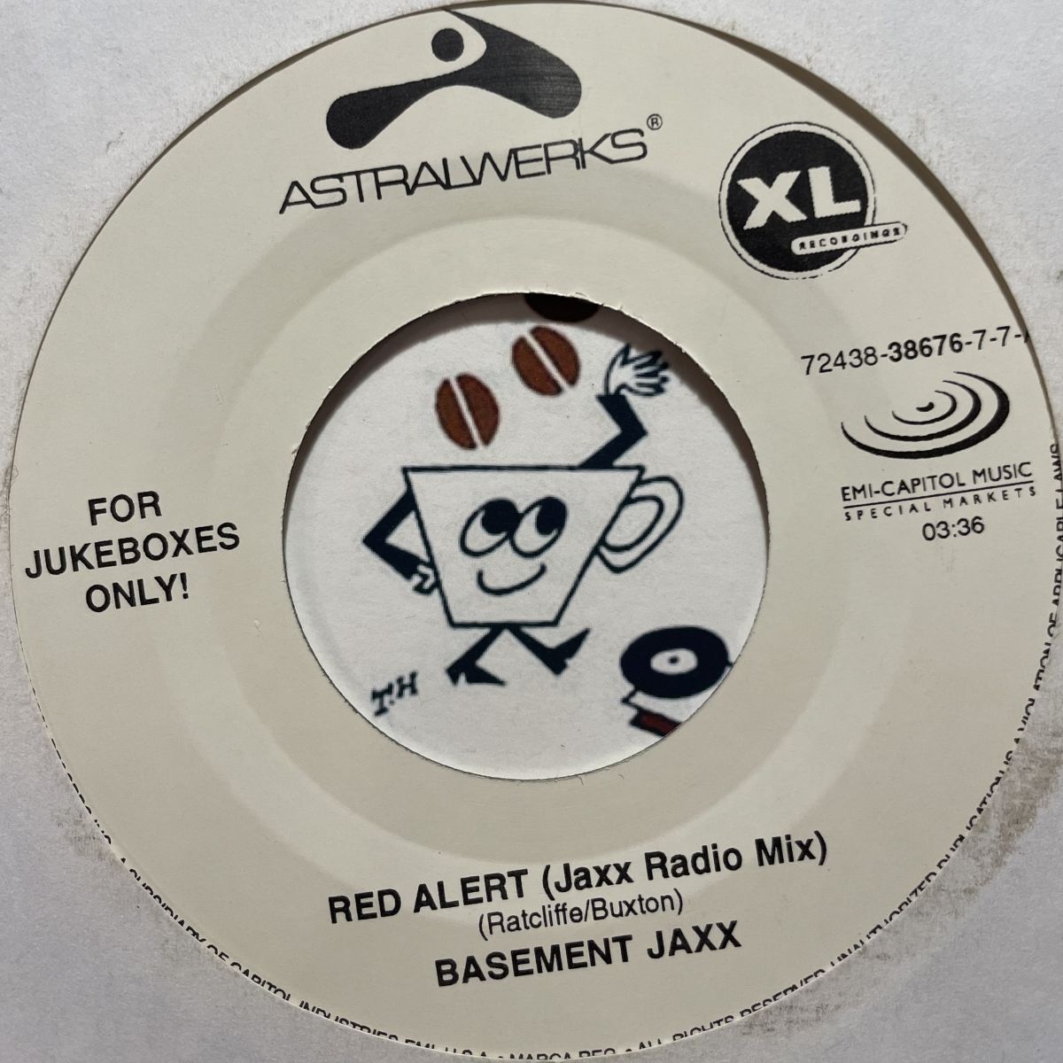 UK発エレクトロDANCEユニットBASEMENT JAXXの2000年リリースタイトルRED ALERTのASTRALWERKSレーベルプロモONLY SEVEN INCシングル盤。DAVID MORALESのNEEDIN Uや彼らBASEMENT JAXXに若かりし頃には大変お世話になりましたって皆さまが今のニッポンを支える礎だと思います。さァSEVENに買換えて再びフロアに挑もうではないかッ!!!