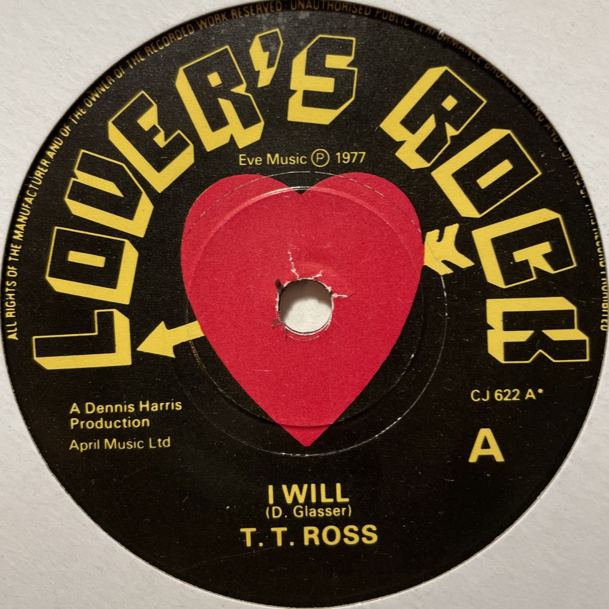 UKラヴァーズ旗印LOVERS ROCKレーベルリリースの人気女性シンガーT.T. ROSSの1977年SEVEN INCシングル盤I WILL。同レーベル貴重音源を集めたコンピCDにも収録されるコレぞコレがラヴァーズの殿堂曲!!!フロアの空気を一掃してくれる静寂イントロから徐々に高揚していくコノ感じ、たまりませんねッ
