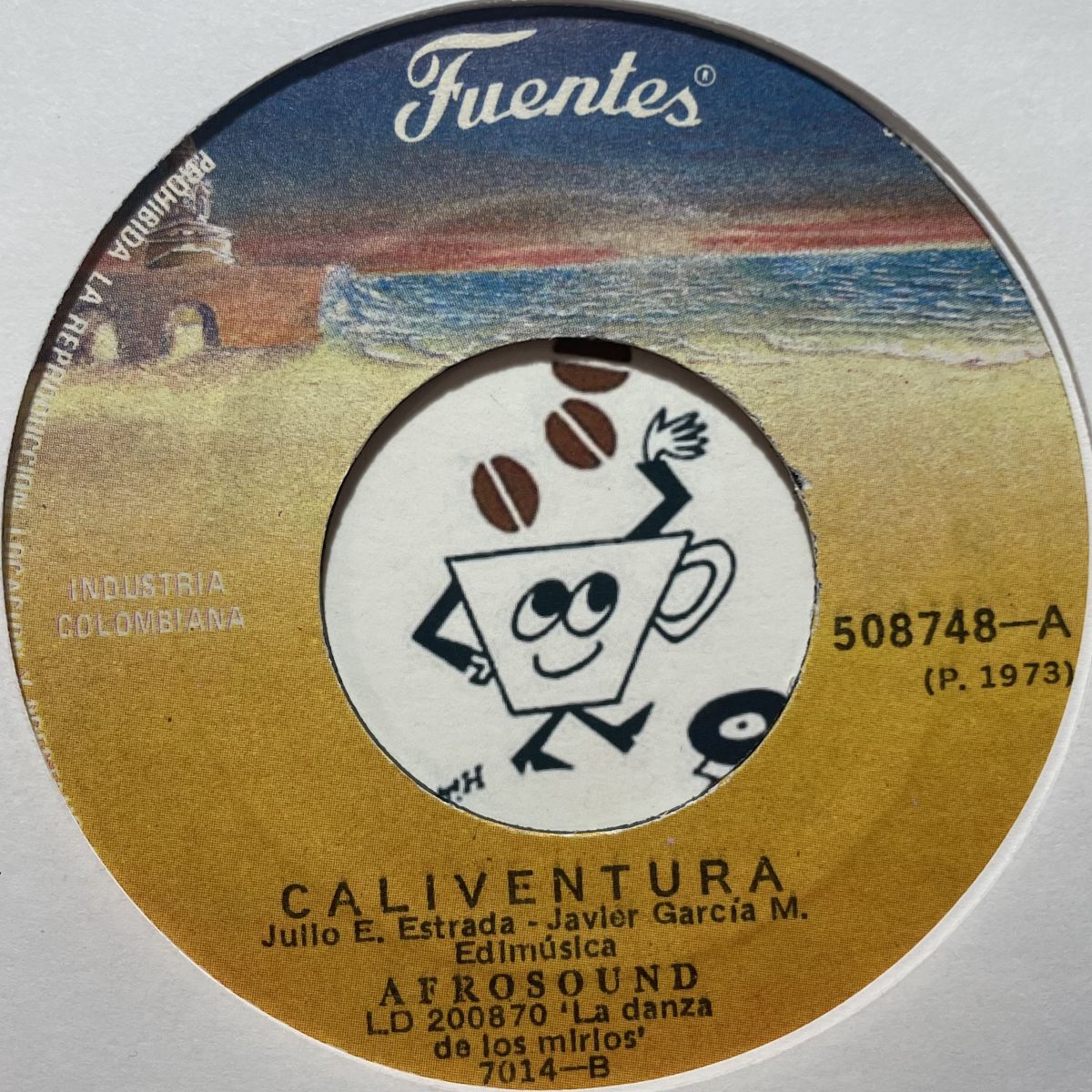 DISCOS FUENTES至宝LATIN-FUNKグループAFROSOUNDの1973年FUENTESレーベルリリースSEVEN INCシングルCALIVENTURA。言葉の意味は良く解りませんが、毎度ブッ飛んだアレンジで楽しませてくれる変体LATIN-FUNKバンドが見事期待に応えてくれた辺境密林FUNKで、怪しさもテロテロ具合も摩訶不思議ギミック音も全部乗せの大盛りだぞッ!!!VAMPISOULレーベルコンピ盤も豪華再発SEVEN10枚BOXセットは棚に飾ってコチラのオリジナルSEVEN INCを買うのが粋ってモノでございます。