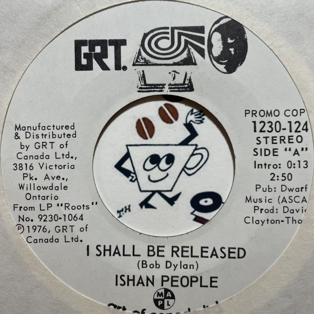 CANADAのジャマイカ移民カリビアンコミューン発REGGAEバンドISHAN PEOPLEの1976年アルバムROOTSから収録曲I SHALL BE RELEASEDを抜粋したGRTレーベルプロモSEVEN INCシングル盤。タイトル通りBOB DYLAN名曲I SHALL BE RELEASEDをREGGAEアレンジでリクリエイトした逸品で、誰もが知ってる曲のカバーは安直にウケが良いからって事でも全く問題ないと思いますが、お聴きの通り筋金入りのROOTS-REGGAE愛好家の皆さまも納得せざるを得ない高品質カバーだとボクは思いますッ!!!