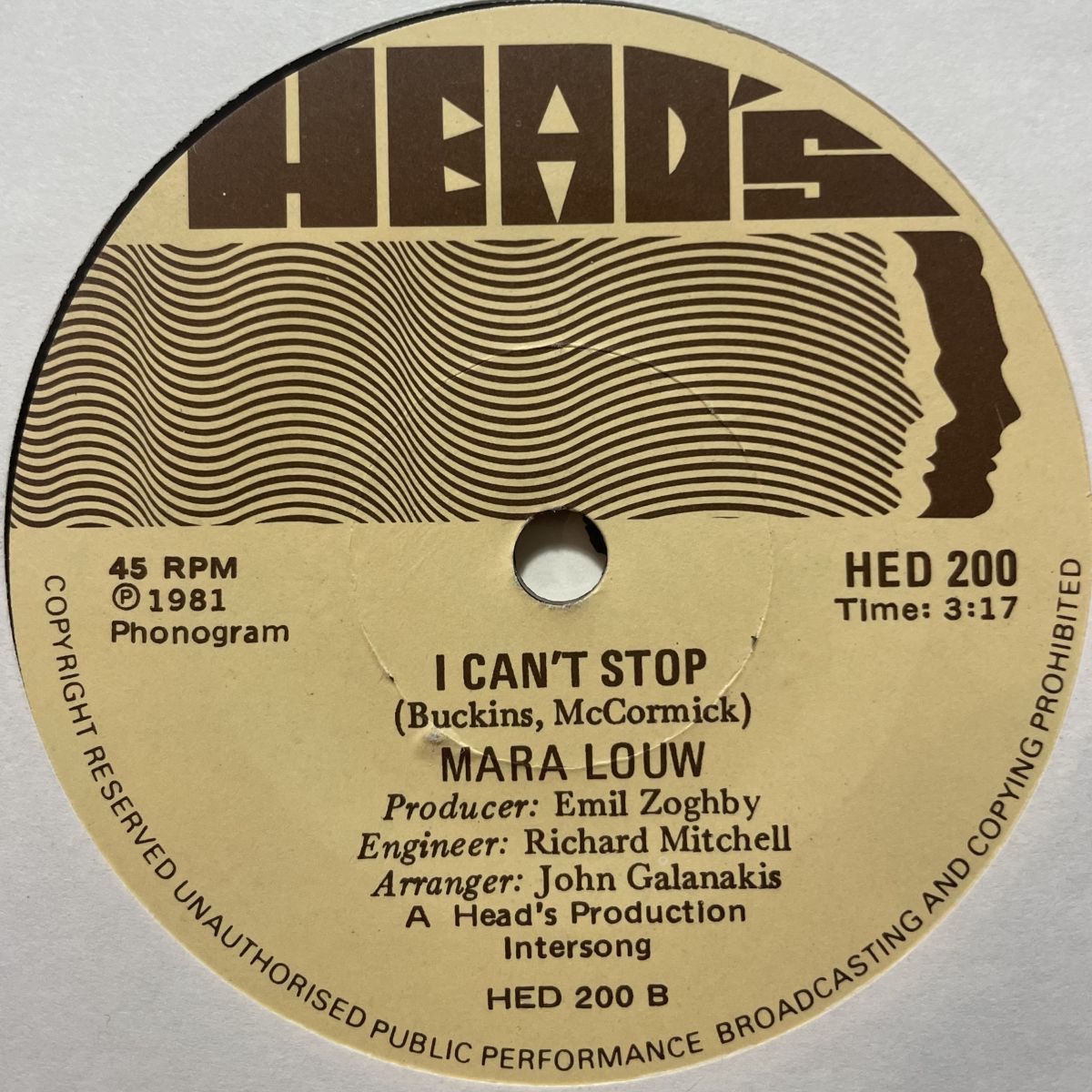 南アフリカ出身のSOULシンガーMARA LOUWの1982年大手POLYDORレーベルリリースSTアルバム収録曲I CANT STOPの前年南アご当地ローカルHEADSレーベルリリース希少SEVEN INCシングル盤。タイトル通りBETTYE VAVELLTEが放ったダンクラ定番I CANT STOPカバーで、お聴きの通り?オリジナル超え?超えちゃってますよねッ!!!!!頑張れば買えるLPで我慢してる時じゃないですよね。ボーナス商戦ッ!!!!!
