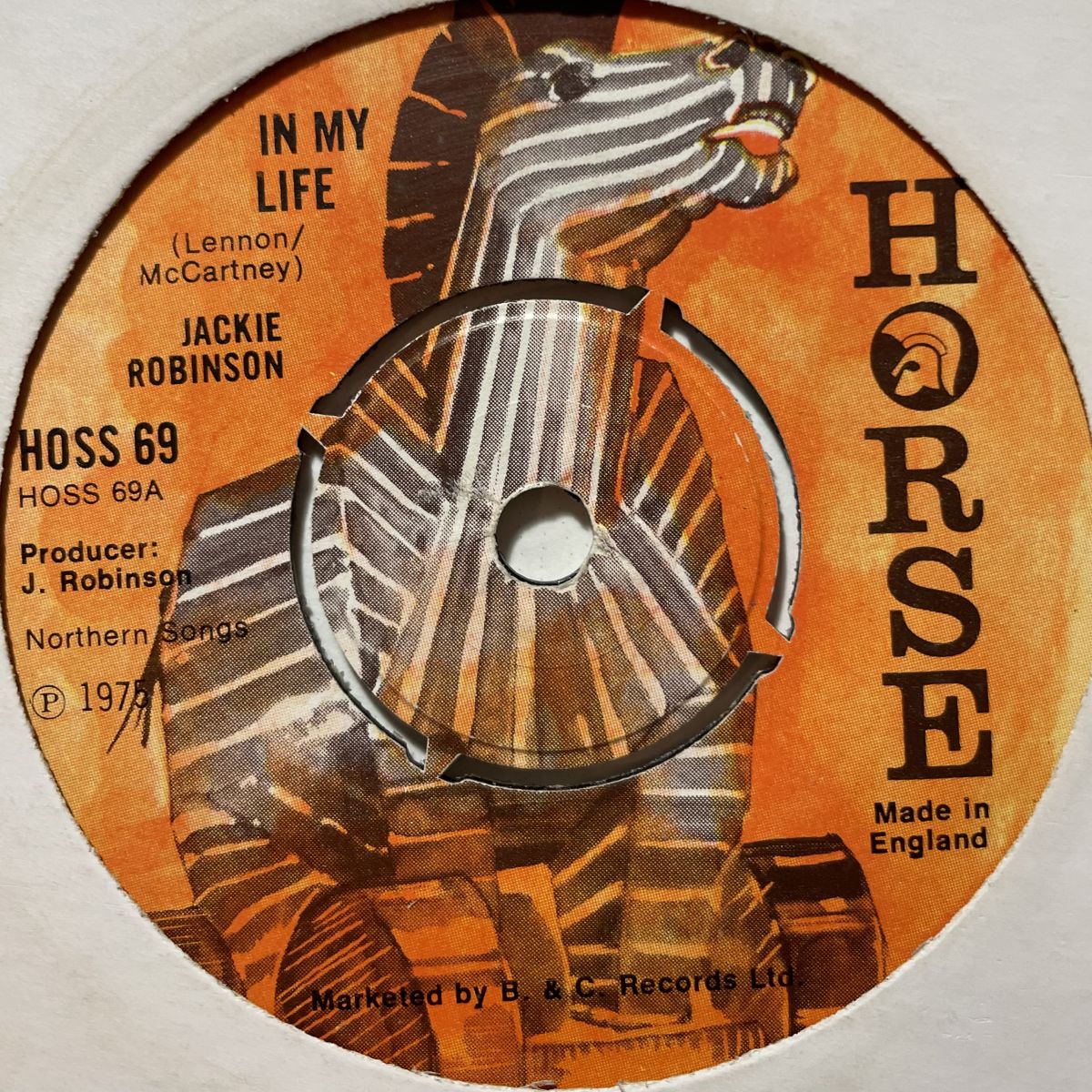 JAMAICA-REGGAEシンガーJACKIE ROBINSONの1975年UK HORSEレーベルリリースSEVEN INCシングルIN MY LIFE。BEATLESオリジナルのまろやかさと哀愁を継承しつつもPOPな木漏れ日感をブレンドした心に沁みるREGGAEカバーでございますッ!!!人肌恋しいこの季節、この温もりに抱き着きたくならないワケがないですよね。