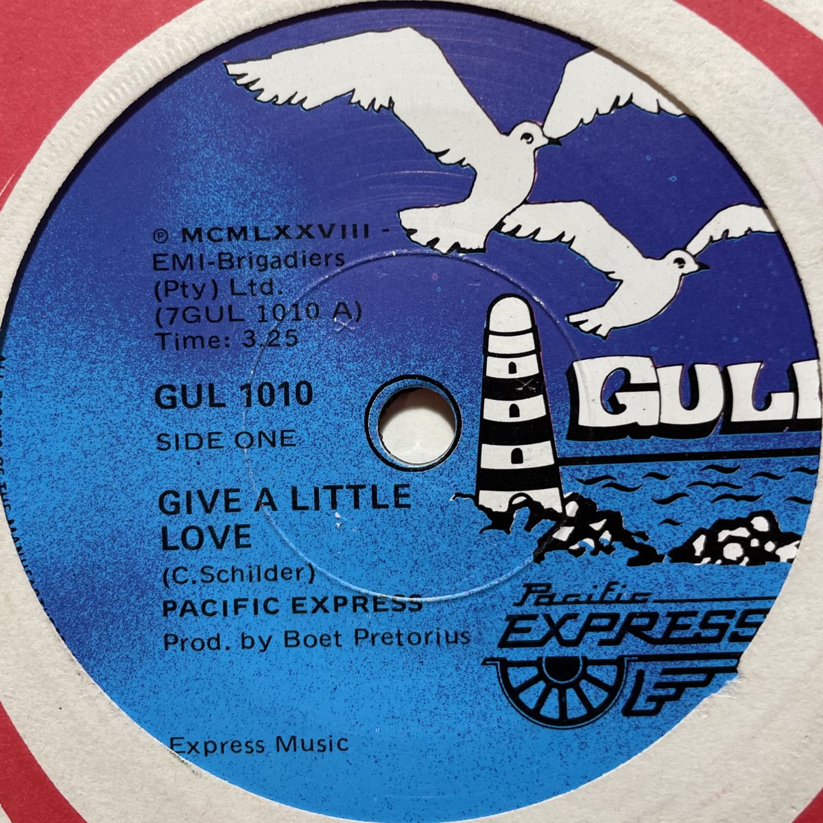 南ア産ソウル頂点に君臨、南アフリカのEARTHと賞されるソウルFUNKバンドPACIFIC EXPRESSの1978年リリース2NDアルバムON TIMEから収録曲GIVE A LITTLE LOVEとDREAMを抜粋したご当地ローカルGULLレーベルリリースSEVEN INCシングル盤。LPハイライト曲WE GOT A GOOD THING GOING ONって事は百も承知、ネオアコ育ちのワタクシはGIVE A LITTLE LOVEが大好きだし、メロウさ加減ではカップリング曲DREAMの存在も決して侮れませんよねッ!!!まァ2NDアルバムON TIMEが最高傑作だって事なのですがね。