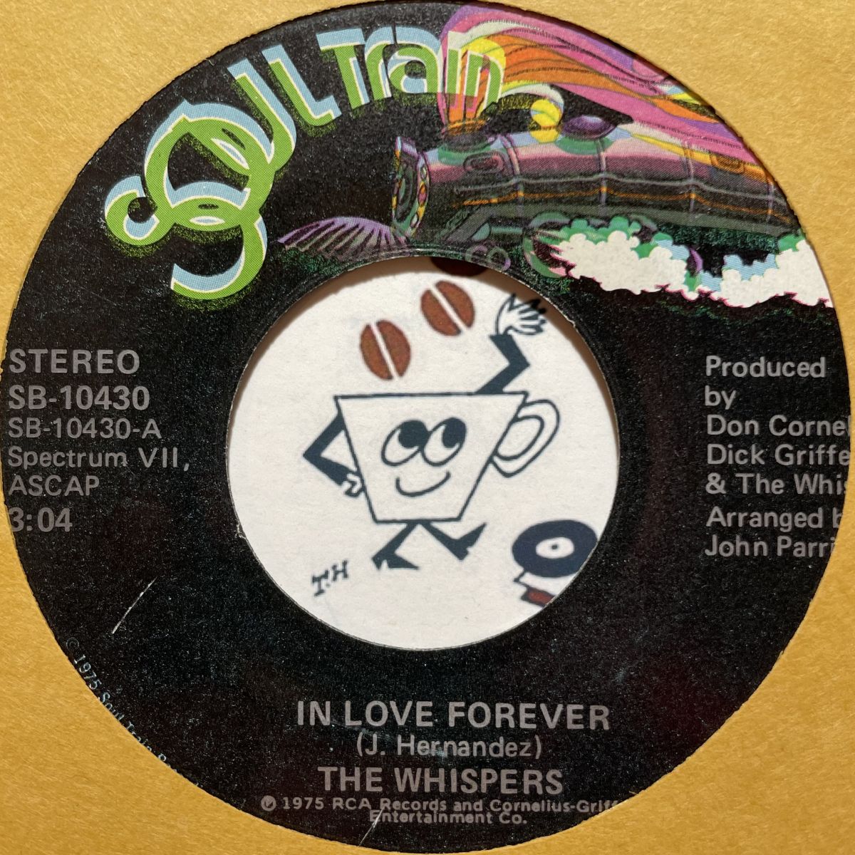 USソウルVOCALIESグループTHE WHISPERSの1975年SOULTRAINレーベルSEVEN INCオンリーシングルIN LOVE FOREVER。艶やかかつ力強く分厚いホーンセクションを追い風に、突き抜ける爽快なVOCALコーラスとキャッチーなフレーズで瞬く間に登り詰める至福の大名曲IN LOVE FOREVERで、年末年始は踊り狂って下さいなッ!!!