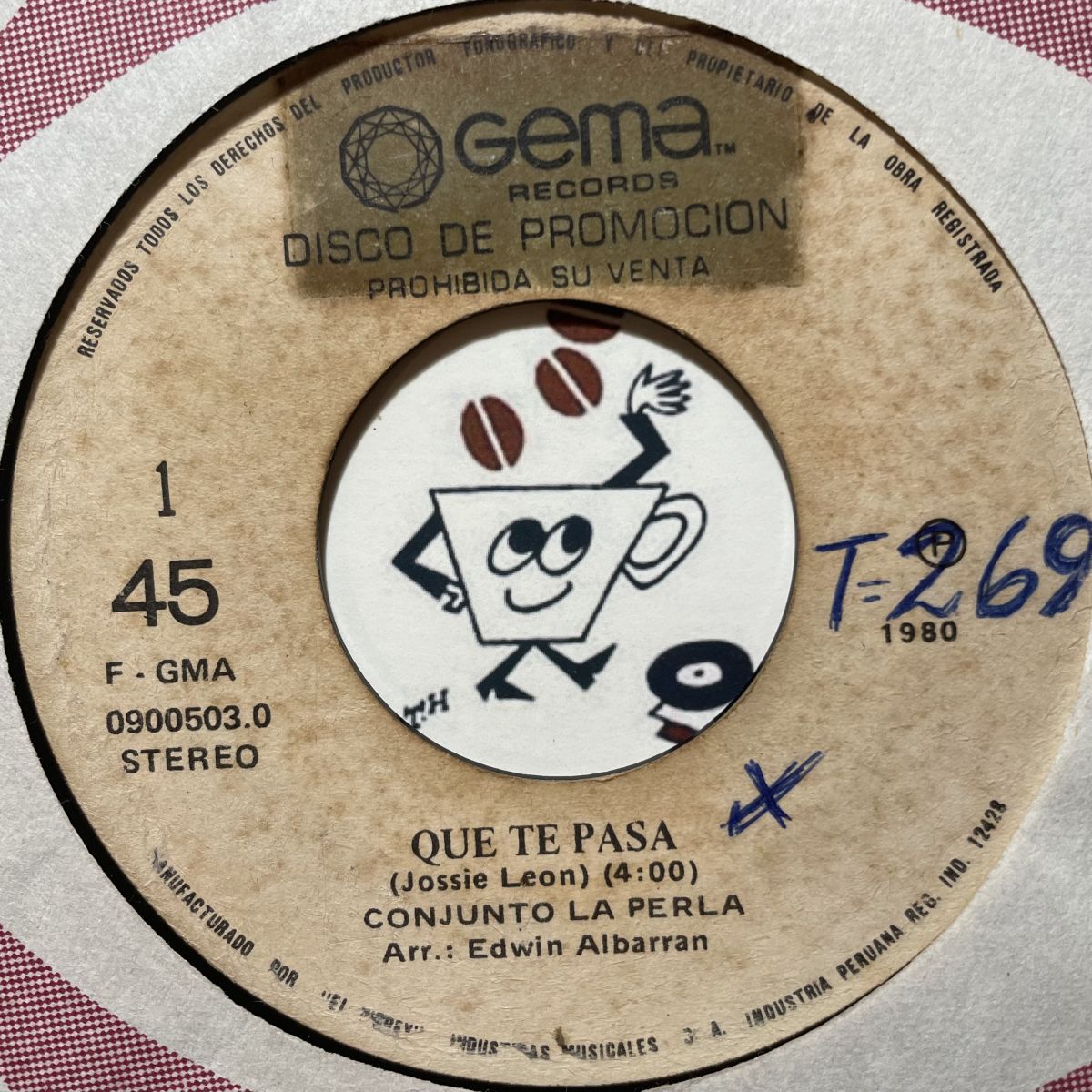 打楽器奏者FRANCISCO ALVARADOが在席したプエルトリコ発LATIN-SALSA楽団CONJUNTO LA PERLAの1980年メキシコGEMAレーベルリリースSEVEN INCシングルQUE TE PASA。彼らの最高傑作と名高いあのアルバムLLEGAMOSの収録1曲目の大役を担ったロマンチックこの上ない逸曲QUE TE PASAのSEVENシングルなんて欲しいに決まってるじゃァないかッ!!!!!コレで勃たないSALSAファンは皆無でしょう。