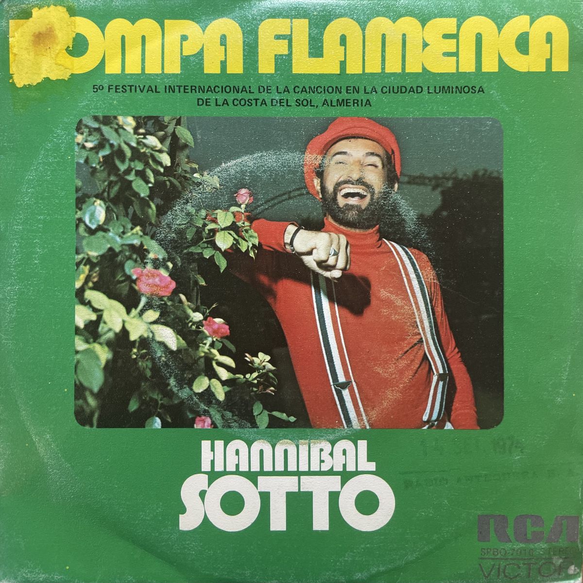 ネタMORE POMPAのサイケデリックなコーラスに誰もが虜となったキューバLATINマエストロTITTI SOTTOの別名義HANNIBAL SOTTOのスペインONLY1974年RCAレーベルリリースSEVEN INCシングルPOMPA FLAMENCA。スペインONLYリリース相応しく十八番のご機嫌POMPAのリズムとご当地フラメンコを見事に融合させた歌謡式LATIN-FUNKダブルサイダーで映えっぷりは沸点の領域でございますッ!!!殿方のご期待通り桃色サイケコーラスも咲き乱れておりますよ。