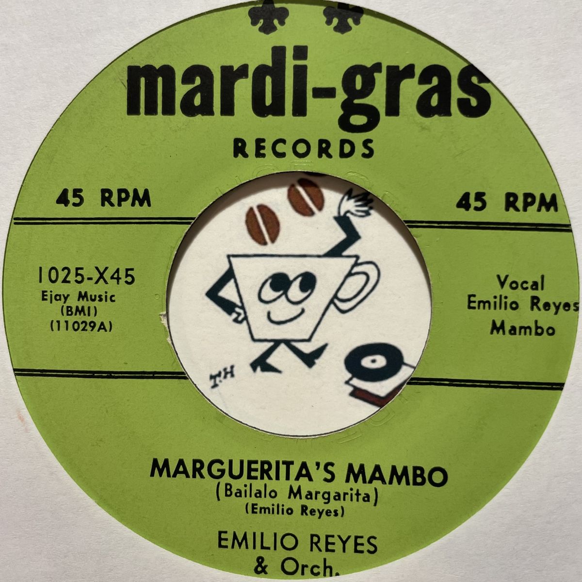 CUBAラテン音楽巨星、オーケストラ指揮者LATINトランペット奏者EMILIO REYES率いるオーケストラの1956年MARDI-GRASレーベルリリースSEVEN INCシングルMARGUERITAS MAMBO。50SでMARDI-GRASレーベル音源が大好きなワタクシ、現状としましては大概は粗悪な盤しか現存しないのがとても歯がゆいのですが、試聴の通り見事なコンディションでの入荷に成功致しました!!!!!録音当時の景色が聴こえる色鮮やかなヴィンテージMAMBOをこよなく愛する皆さま、コレは買いです。今でしょッ!!!