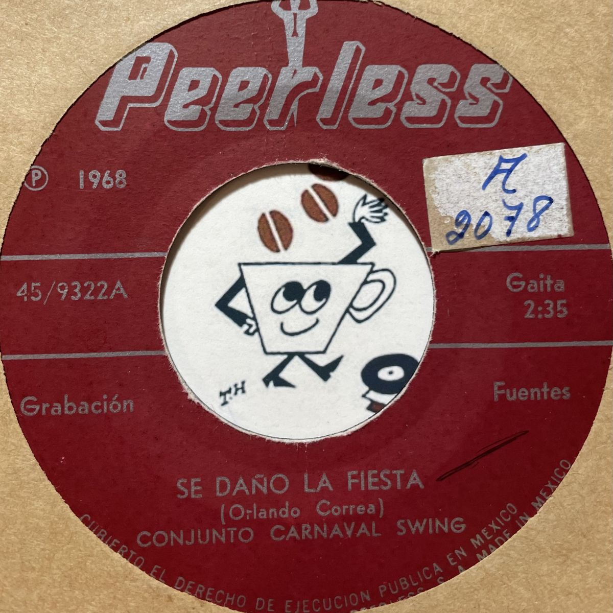 メキシコLATIN舞曲楽団CONJUNTO CARNAVAL SWINGの1968年PEERLESSレーベルリリースSEVEN INCシングルSE DANO LA FIESTA。コチラ誰ってオーパス店主のTOP-WANT盤なので需要が在るか否かは全く知りませんが、究極RARE盤の類たという事だけは断言させて頂きます。何でかって?そりゃ長年探し続けた逸品でその張本人がワタクシでございますから確かな証拠でございましょうッ!!!!!このクラスは高いか安いかはあまり関係なくて、好みかそうでないかと今度いつ会えるのかが最重要だと思います。