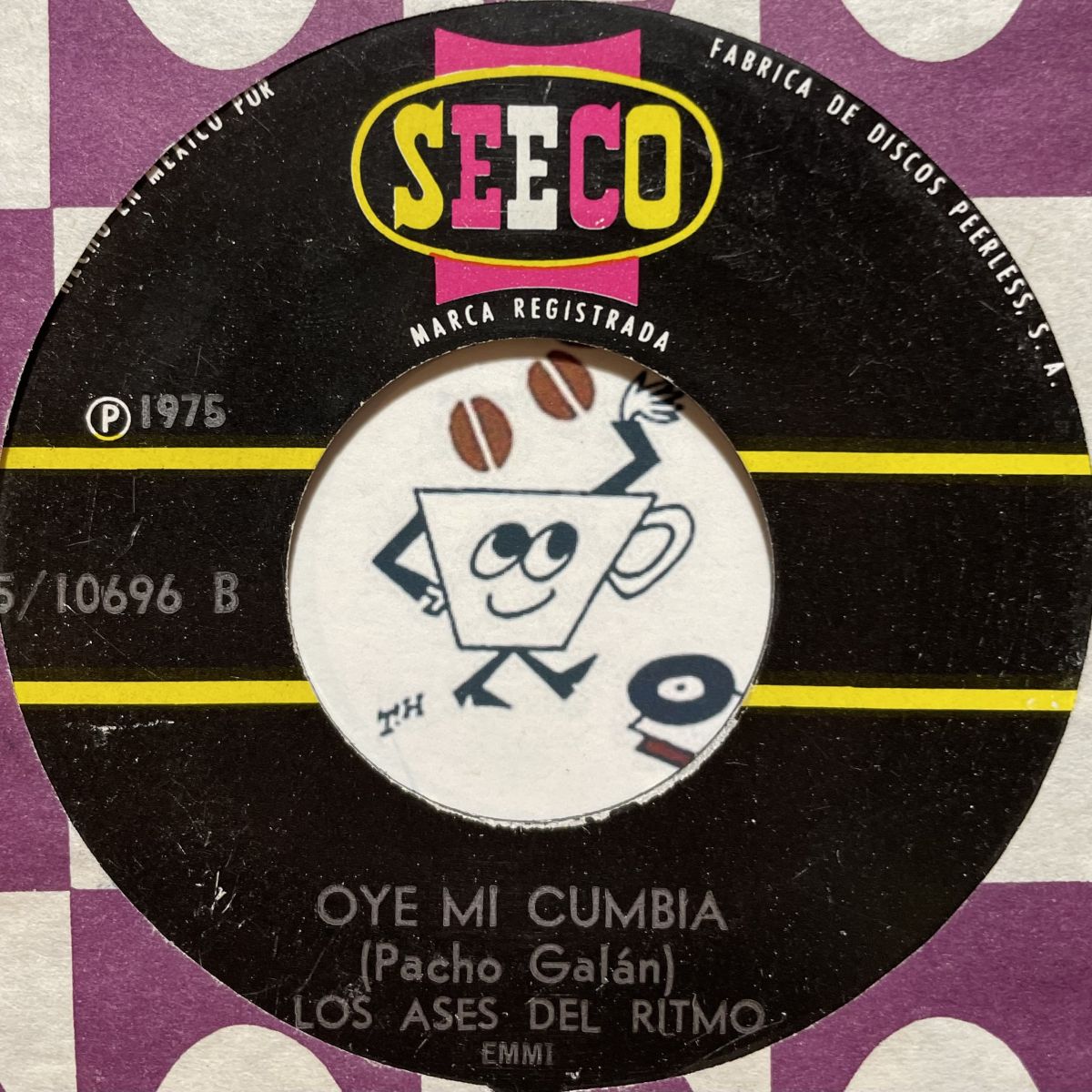 コロンビアを代表する伝説のアコデオ二ストANIVAL VELASQUEZの名演を支えた名門楽団LOS ASES DEL RITMOの1975年SEECOレーベルリリースSEVEN INCシングルOYE MI CUMBIA。筋金入りのクンビア愛好家の皆さまは血眼でボリビアご当地ローカルRCUレーベル盤オリジナルをお探しかと思いますがコチラSEECO盤も既に立派なヴィンテージ、全くお目に掛れなくなりましたね。決して妥協では無い、コチラもメガRAREッ!!!!!
