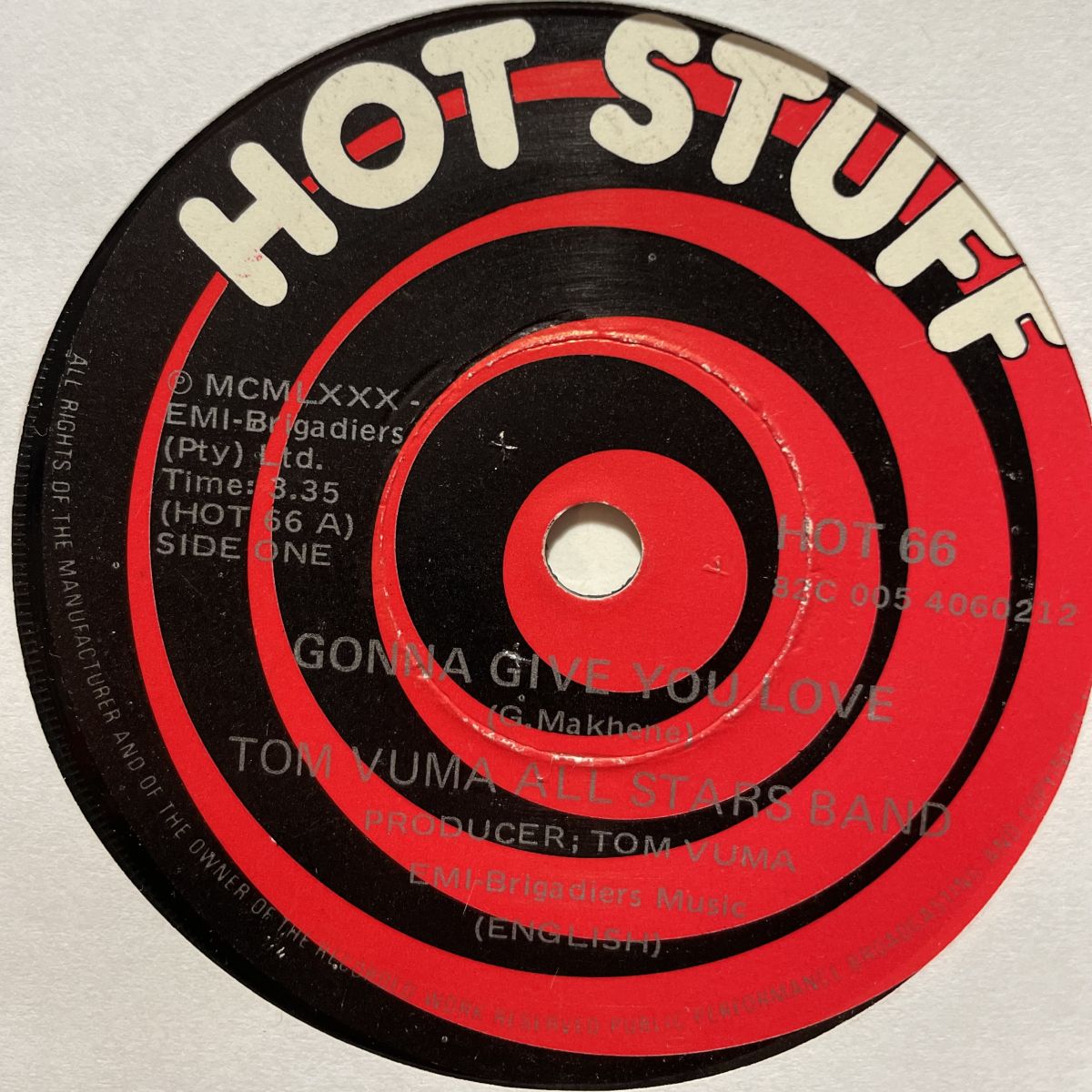 USD500超えアルバムGONNA GIVE YOU LOVEがマニア憧れの逸品、STUDIOミュージシャンTOM VUMAが率いた南アフリカ共和国のDISCO-FUNKバンドTOM VUMA ALL STARS BANDの1980年HOT STUFFレーベルリリースSEVEN INCシングルGONNA GIVE YOU LOVE。そうなんですよLPタイトル曲GONNA GIVE YOU LOVEのSEVENシングル、しかもカップリング曲にはROCK AND ROLL GIRLを大抜擢!!!!LPを探しながらの箸休めにしては実に贅沢な逸品でございますよね。このシングルGETでLPのWANTを止めるって事もあり得るのかな。