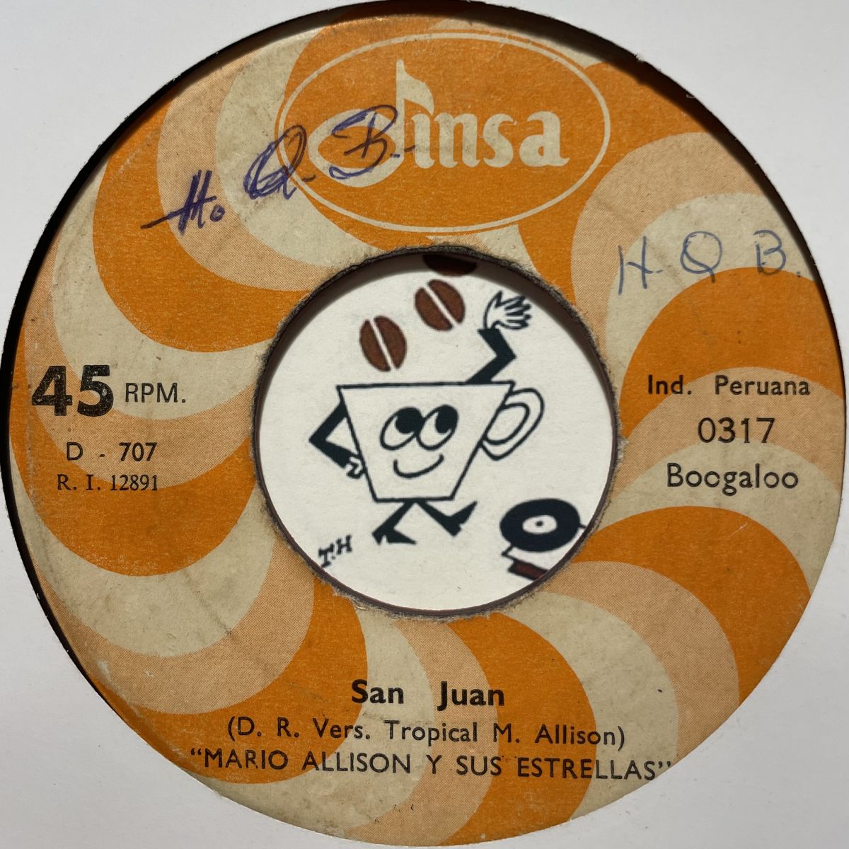 南米ペルーが誇る敏腕バンマスMARIO ALLISON率いるMARIO ALLISON Y SUS ESTRELLASの、彼が指揮を振った楽曲中でも屈指の逸曲と名高いSAN JUANがヴィンテージDINSAレーベルオリジナルSEVEN INCにて再登場です!!!!!おそらく誰もが認めるペルー産ブーガルーの最高傑作で、ラララコーラスの煽りも切れッ切れの演奏もアグレッシブなアレンジも全てが攻撃的かつ刺激的ッ!!!コレが伝説名手の実力でありカリスマの片鱗ですね。IMPALAレーベル70S後期盤もございますがヴィンテージの香ばしさを望むならばコチラのDINSAレーベルの質感が断然おススメですよッ