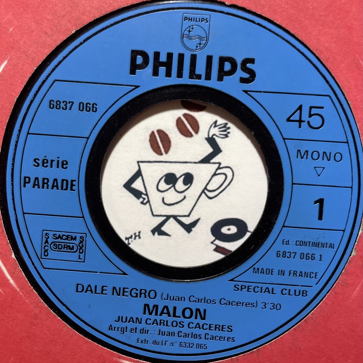 アルゼンチン出身の作曲家JUAN CARLOS CACERES絡みのフランス発プログレJAZZ LATIN-ROCKバンドMALONの1972年アルバムEL CAMINO DALE NEGROから収録曲であり屈指のハイライト曲DALE NEGROを抜粋したPHILIPSレーベルプロモSEVEN INCシングル盤。お聴きの通り本丸LATIN-ROCK旗印MALOやAZTECA、更には南米BLACK SUGARや密林サイケROCKファンをも一撃で虜にするこの響きッ!!!!!成人男子は全員スルー厳禁でございましょうッ