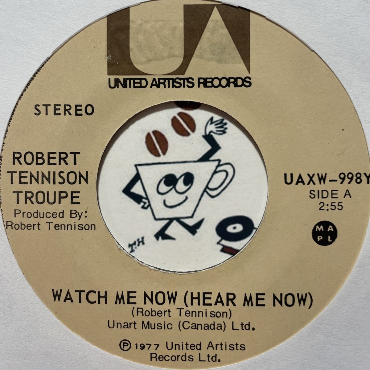 CANADAケベックのおしどり夫婦デュオTHE ROBERT TENNISON TROUPEの1977年UAレーベルリリースSEVEN INCシングルWATCH ME NOW。ソフロファンマストの1974年アルバムTWO WORDS THREE WORDS(DONT FORGET YOU CARED)には未収録のSEVEN INCオンリータイトルの美ソフトロックWATCH ME NOW、カップリングにはアルバム収録曲I CAN SEEのFUNKサイケ盛りインストVERSIONを収録でございますよッ!!!!!