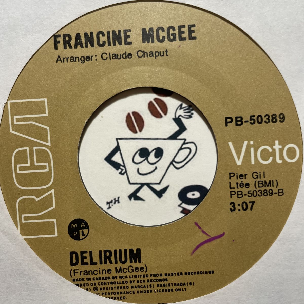 CANADAディスコシンガーFRANCINE MCGEEの1977年RCAカナダリリースSEVEN INCシングルFEELIN GOOD。再発する程でも無いだろうにと昔は不思議に思ってたのですがDANCEクラシックファンにはおなじみLOFT CLASSICの大名曲でございますね!!!妖艶な歌声を披露したFRANCINE MCGEE当人さまには大変申し訳ないのですがワタクシも皆さま同様インストVERSIONのカップリング曲DELIRIUMがお目当てさッ!!!!!お聴きの通りコリャ春の通り雨SPRING RAINなんて悠長なモンじゃございませんね、もう危険な領域のゲリラ豪雨でございます!!!ちなみにSEVENプレスはカナダとUKのみですからね。そうゆう事ッ