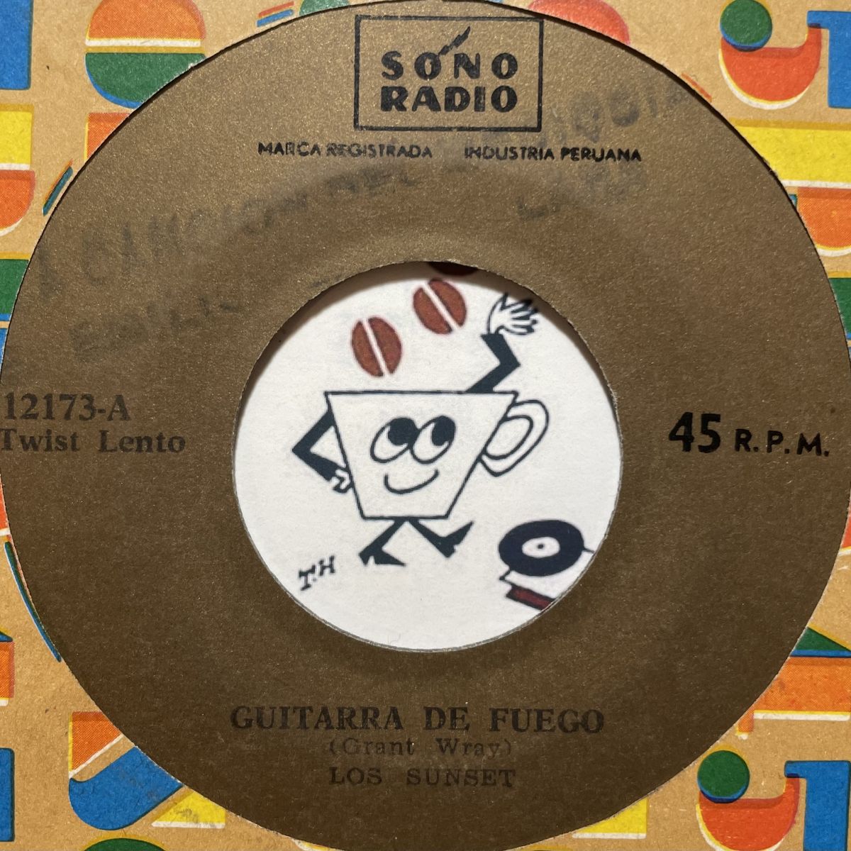 南米ペルーのガレージR&R-SURFバンドLOS SANSETの1964年SONORADIOレーベルリリースSEVEN INCシングルGUITARRA DE FUEGO。どうも最近オーパス店主は、ペルー産ガレージSURFバンドが醸し出す怪しく胡散臭いチープな音色は他とは明らかに異色、別格ではなく別枠でございますねッ!!!この沼にハマると抜け出せません、、、中毒性高しッ