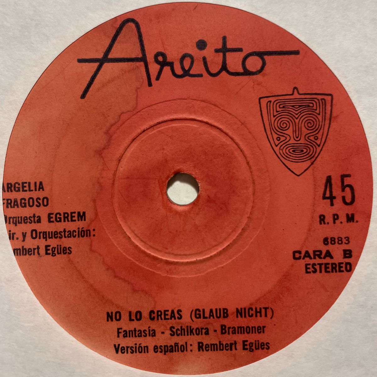 キューバLATIN歌手ARGELIA FRAGOSOの70Sご当地老舗AREITOレーベルリリースSEVEN INCシングルNO LO CREAS。別シングルUN JUEGO DE AMORと共にコチラNO LO CREASもCUBA産RARE-GROOVEを掻き集めた極上コンピRITMO CALIENTE収録でございますから、猛者の皆さまは挙ってお探し中のハズです美品をねッ!!!非常に希ですが、今回は盤質完璧ですYOッ