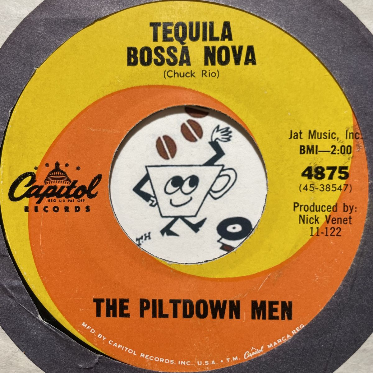US R&Bサックス奏者JACKIE KELSO絡みのSTUDIOミュージシャンR&R-SURFバンドTHE PILTDOWN MENの1962年CAPITOLレーベルリリースSEVEN INCシングルTEQUILA BOSSA NOVA。字面の通りでございますテキーラにBOSSA-NOVAをブレンドしたTEQUILA BOSSA NOVA、腕前もなにもコレが悪くなるワケが無いッ!!!よってアナタの腕次第です。踊るのか、踊らないのか、どっちなんだいッ!!!!!