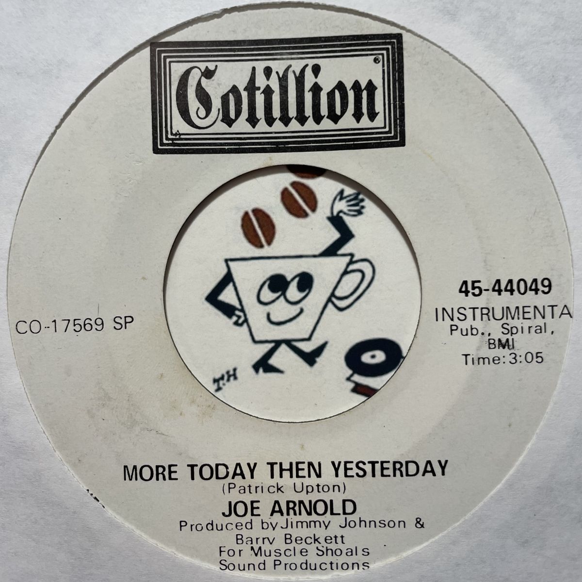 US JAZZサックス奏者JOE ARNOLDの1969年COTILLIONレーベルプロモSEVEN INCシングルMORE TODAY THAN YESTERDAY。JAZZY-BOPな男気溢れるサックが鳴き散らかし歌い上げたMORE TODAY THAN YESTERDAYカバーでございます!!!MORE TODAY THAN YESTERDAYはJACKIE MITTOOがカバーしてますからJAMAICANヴィンテージ愛好家の皆さまもお気に入りのタイトルですよね?SOFT-ROCKファンは当たり前ですね。