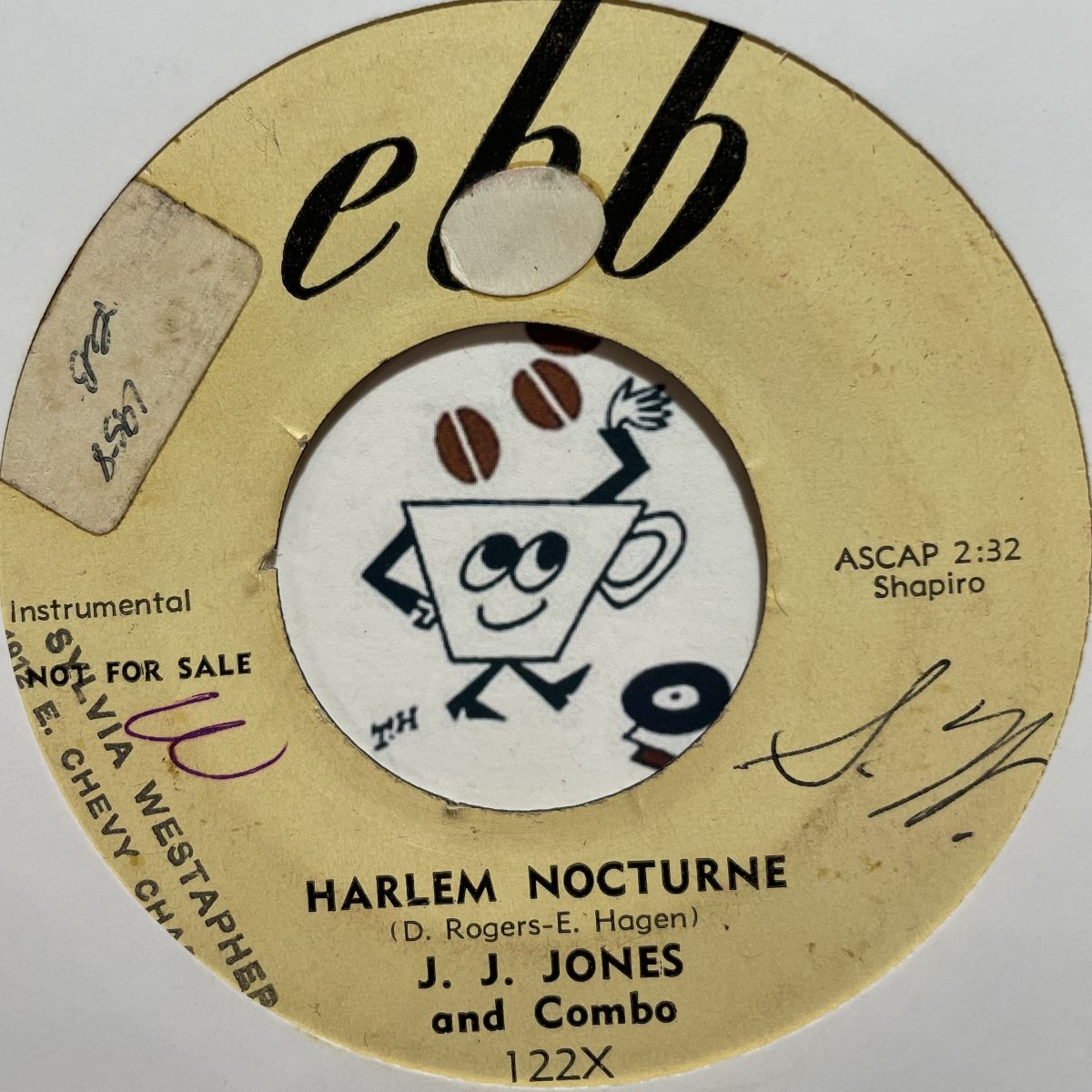 US R&Bサックス奏者J.J. JONESことJESSE JAMES JONES率いるJ.J. JONES AND COMBOの1957年RONEXレーベルプロモSEVEN INCシングルHARLEM NOCTURNE。J.J. JONESと言えばそうAFTER HOURS MAMBOが一般的に人気かつ世間的に知られてはおりますが、コチラHARLEM NOCTURNEカバーのほうが断然RAREだしお探し中の猛者さま多数だと思います。年に1度の再入荷をお見逃し無くッ!!!!!
