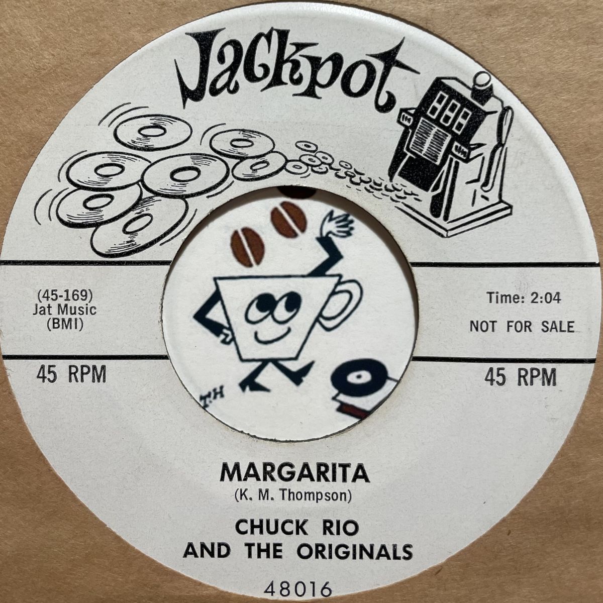 おなじみCHAMPSメンバーCHUCK RIOが率いたCANADAのR&B TITTY-SHAKERバンドCHUCK RIO AND THE ORIGINALSの1958年US JACKPOTレーベルプロモSEVEN INCシングル盤。試聴の通りTEQUILAノリのウキウキエキゾTITTY-SHAKERさッ!!!毎夜毎夜の定番も良いですがね、今宵はテキーラじゃ無くてMARGARITAを如何でしょうかね。