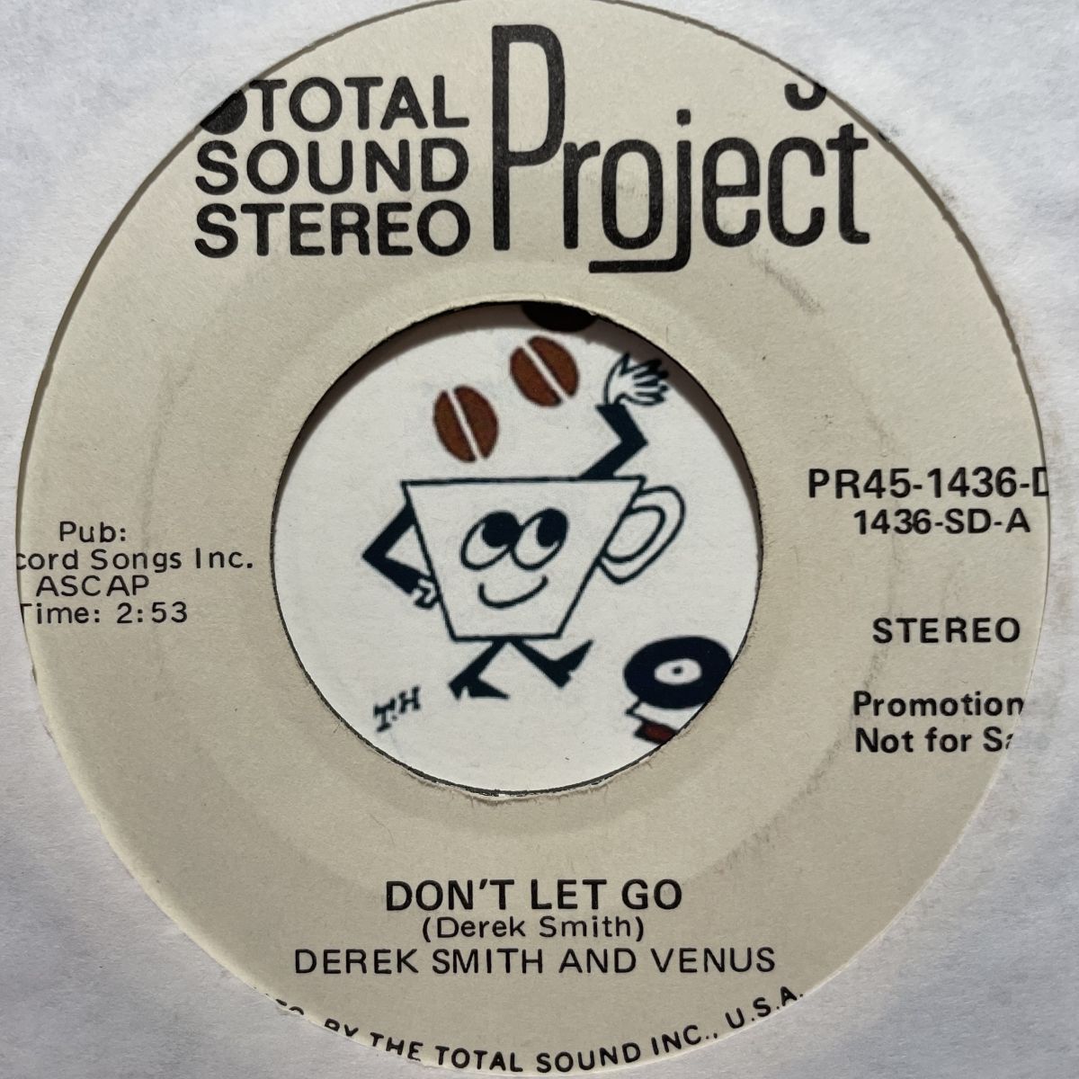 US JAZZ鍵盤奏者DEREK SMITHの愛猫家必須アルバムDONT LET GOからタイトル曲を抜粋した1976年TROJECT3レーベルプロモSEVEN INCシングル盤。VENUSなるビッチな女性コーラス隊を従えENOCH LIGHTプロデュース相応しい王道ディスコで、LOVE FOR SALEやOUR DAY WILL COMEはアルバムで引き続きお楽しみ頂くとして、タイトル曲であり彼のオリジナル曲DONT LET GO、LATINエキゾ代名詞でありワタクシの大好物タイトルBESAME MUCHOをSEVEN INCで持ち運ぼうかねッ!!!!!
