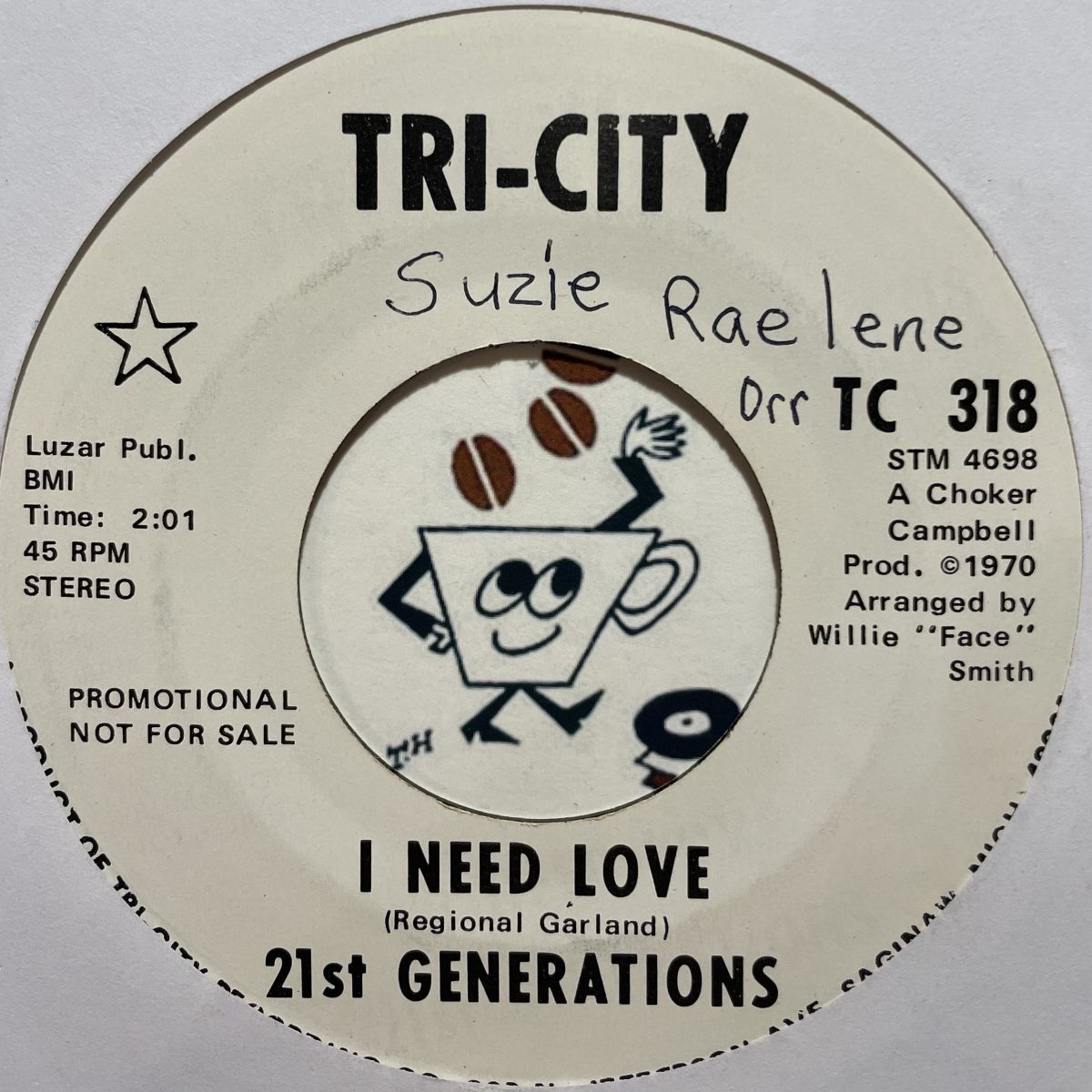 US作曲家プロデューサーREGIONAL GARLANDが手掛けたソウルFUNKユニット21ST GENERATIONSの1970年TRI-CITYレーベルプロモSEVEN INCシングルI NEED LOVE。彼絡みの希少音源THE PERFECTIONSのGIRL YOU BETTER HURRYと双璧を成す超お宝レアSEVENシングルがコチラ21ST GENERATIONSのI NEED LOVEでございますねッ!!!!!世界中のソウルコレクターが手放しませんから、この2枚の評価は今後も下落する事は絶対にないでしょうね。時が経つ程に上がる一方だと思いますッ!!!!!