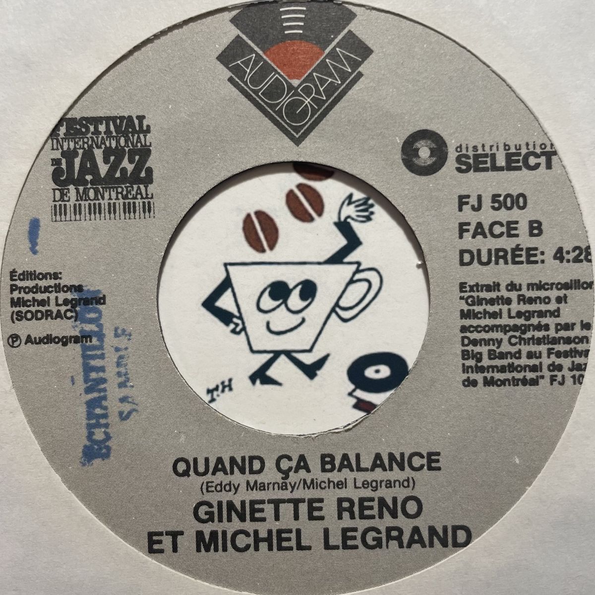 フレンチカナディアンJAZZ-POPSシンガーGINETTE RONOが大御所MITCHEL LEGRANDと共演した1985年LIVEアルバムからおそらく皆さま満場一致のハイライト曲QUAND CA BALANCEを抜粋したAUDIOGRAMレーベルリリースSEVEN INCシングル盤。LPで聴いてワクワクしたあのLIVEならではのダイナミックな演奏と息の合った掛け合いに今一度熱狂して頂きたいッ!!!!!SEVENシングルはカナダAUDIOGRAMレーベルONLYリリースなのでそう簡単には見付からないのよね。