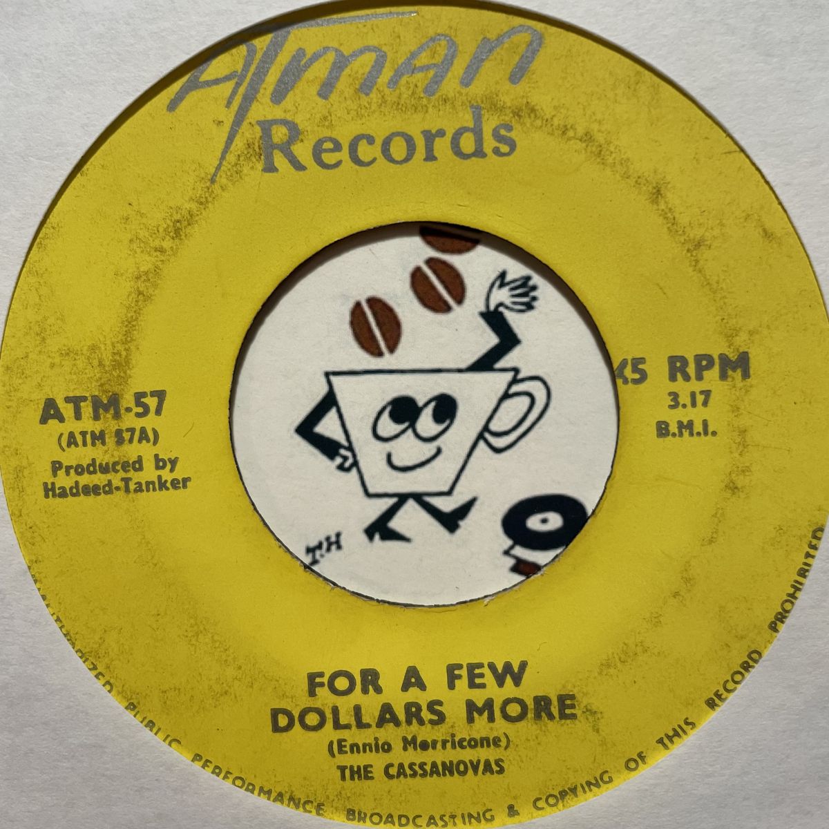 スペイン領バルバドスのJAZZ-CALYPSOバンドTHE CASSANOVASの1968年ご当地スローカルATMANレーベルリリースSEVEN INCシングルFOR A FEW DOLLARS MORE。タイトル通りイタリア偉大な作曲家ENNIO MORRICONE作曲、C.EASTWOOD主演の傑作マカロニウエスタン映画夕陽のガンマンテーマ曲を躍動感モリモリのCARIBBEANオーケストラで仕上げた店主ご満悦の逸品でございます!!!!カップリングにはGROOVINカバーをあくまで序に収録です。嬉しいねッ!!!!!