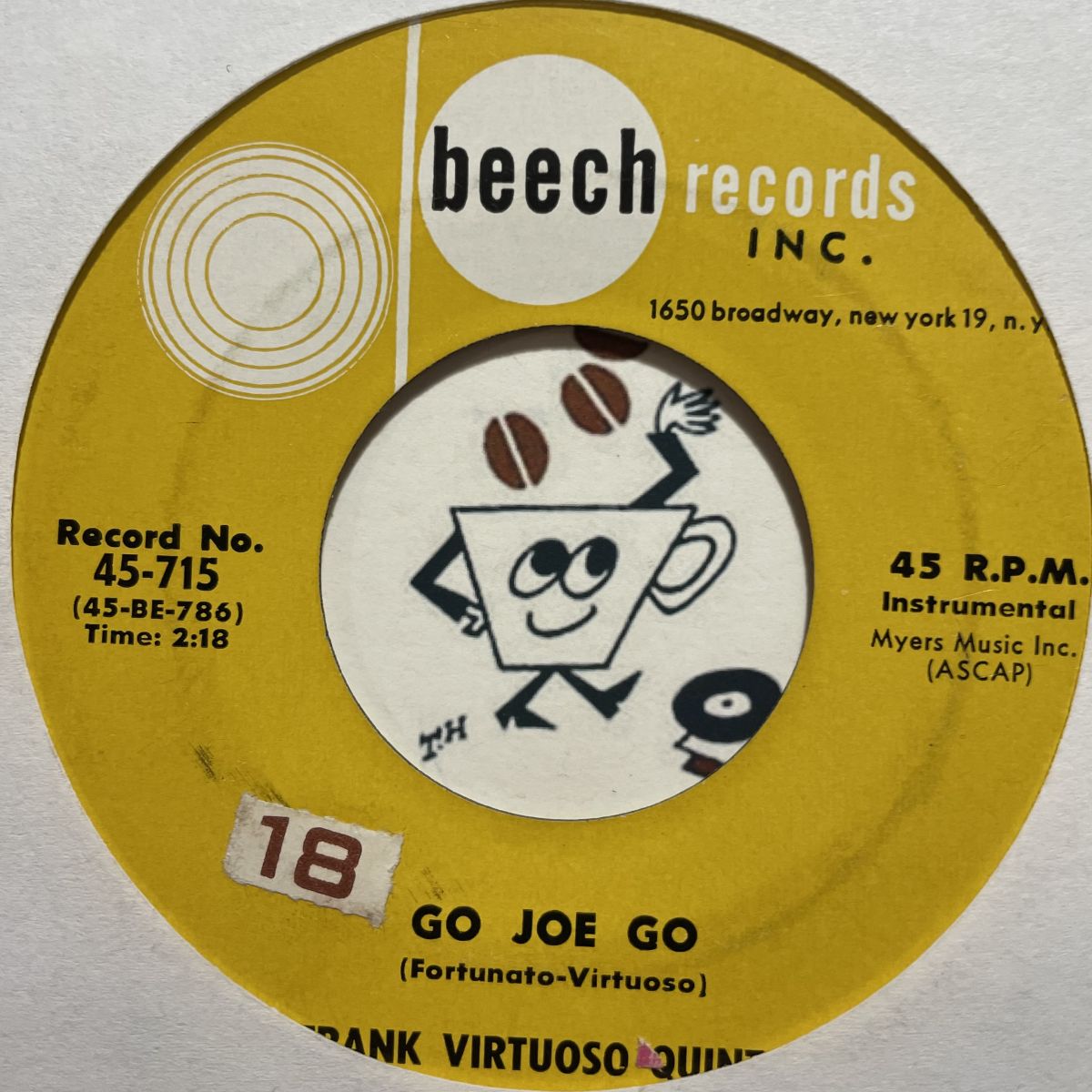 US JAZZコントラバス奏者FRANK VIRTUOSOのQUINTET名義1956年BEECHレーベルリリースSEVEN INCシングルGO JOE GO。試聴曲R&R-JAZZジャイヴGO JOE GOには体調万全、踊る準備も万端で挑みたいですねッ!!!!!ボクが言うのもアレですがショボい粗末なオーパスの試聴音源ですら既にカッコイイでしょう?ホンモノはもっと凄いんだからねッ