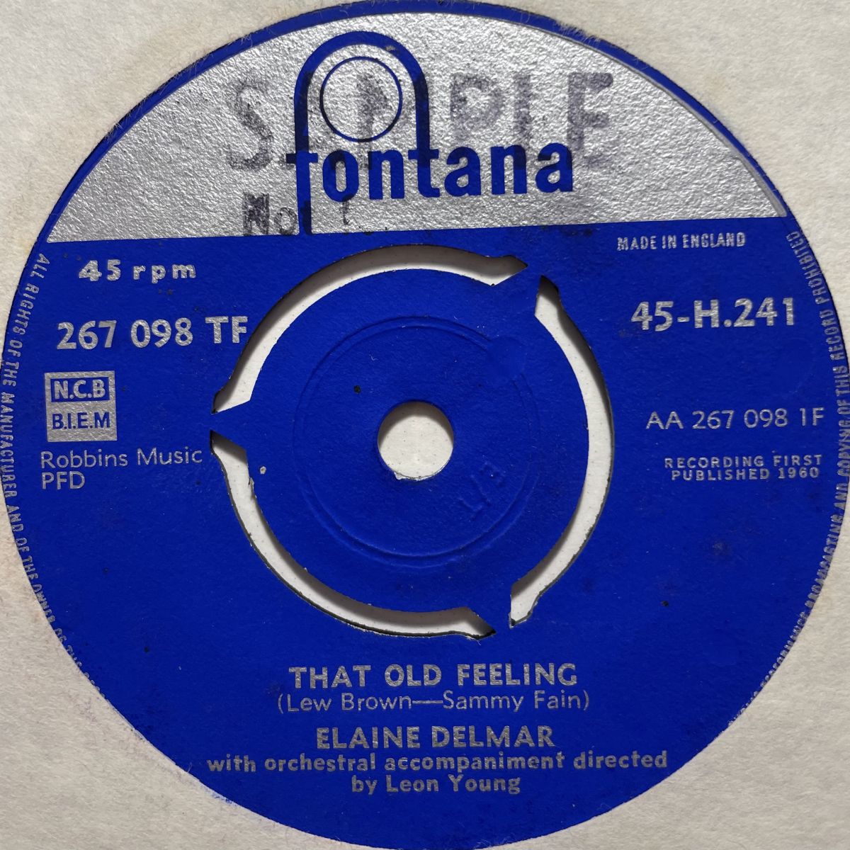 UK黒人JAZZシンガー兼女優ELAINE DELMARの1960年FONTANAレーベルリリースSEVEN INCシングルTHAT OLD FEELING。壮大なスケール感と広がる景色のような臨場感あふれる歌声はJAZZトランぺッターを父に持つ彼女の血統でしょうねッ!!!!!CHET BAKERファンも是非ご試聴お願い致します。