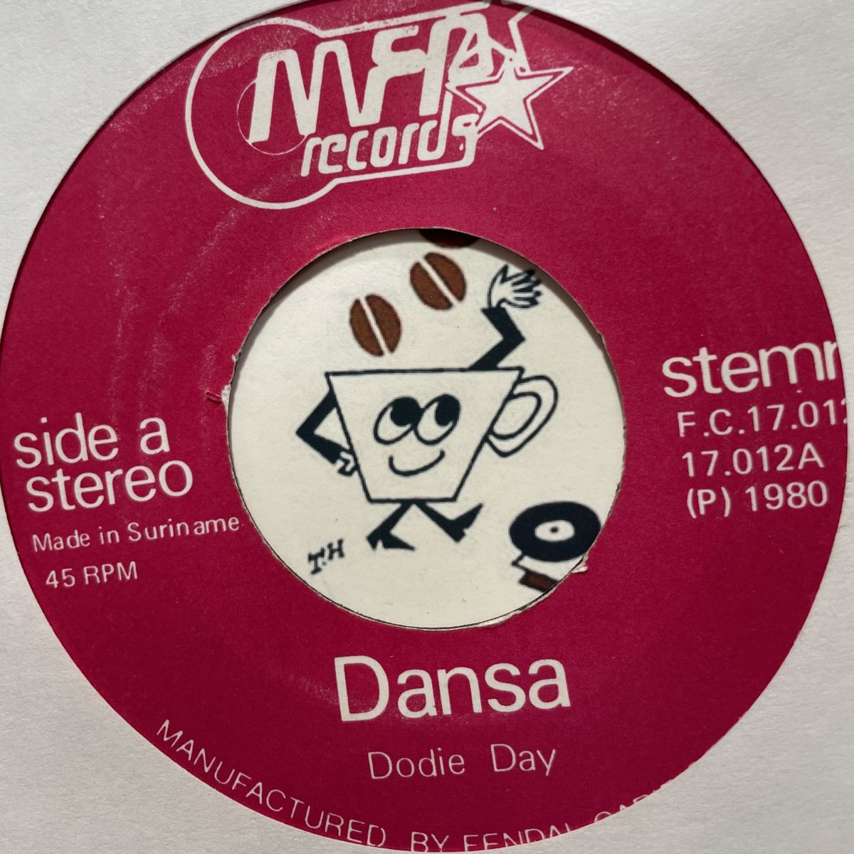 スリナム共和国のアイドル歌手DODIE DAYの1980年ご当地ローカルMFPレーベルリリースSEVEN INCシングルDANSA。時代真っ只中のエイジング歌謡DISCO-FUNKイチゲキDANSAに一聴惚れしたのはもう10年以上前の事ですッ!!!カップリング曲のおニャン子歌謡TAIGIE MIEを聴いてあの時この子に惚れた甲斐ありだったと確信致しました。