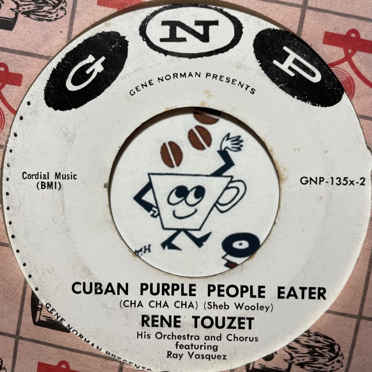 CANADA出身のLATIN-JAZZピアニストRENE TOUZETの1958年GNPレーベルリリースSEVEN INCシングルCUBAN PURPLE PEOPLE EATER。RENE TOUZANT相応しいチャチャチャでMAMBOなアレンジに、更に今回はコーラス隊まで従えちゃってそりゃ当然ですが年末年始気分も最高潮でございましょうッ!!!!!