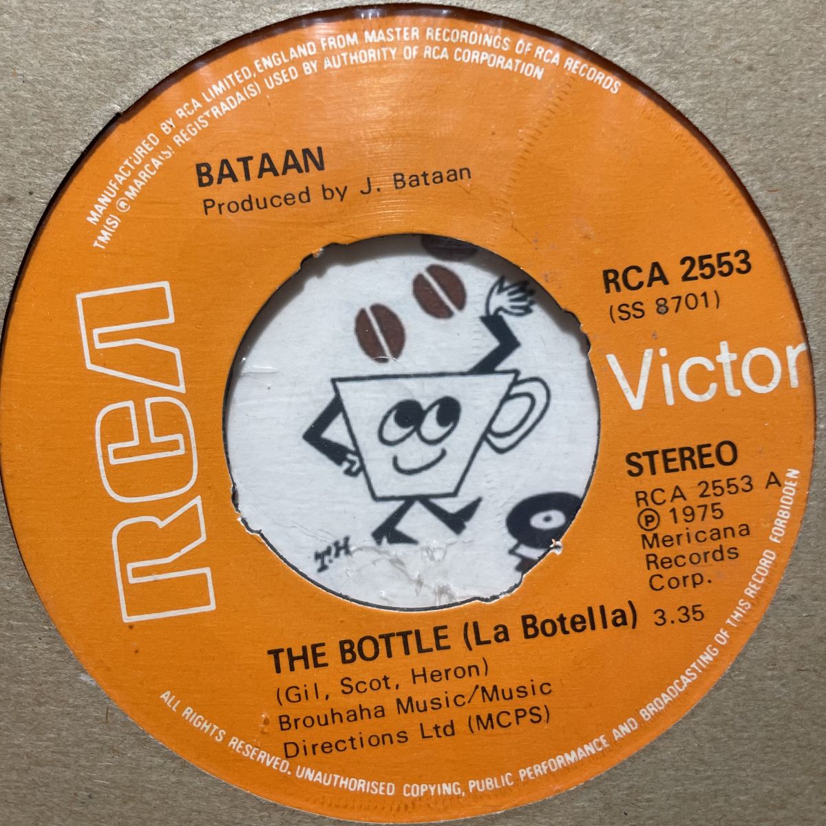 RIOT、SUBWAY JOE、SALSOUL等々名盤を多数残すNUYORICANシーンを代表するキーマンJOE BATAANの1974年アルバムからTHE BOTTLEカバー、WHEN YOURE DOWNを抜粋したRCAレーベルリリースSEVEN INCシングル盤。完全にソウルへと傾倒したSALSOULレーベル相応しいメロウLATIN傑作WHEN YOURE DOWN、GIL SCOTT HELONカバーTHE BOTTLE共に完璧!!!メドレーで繋がっちゃってるアルバムと違って使い勝手も抜群ですね。