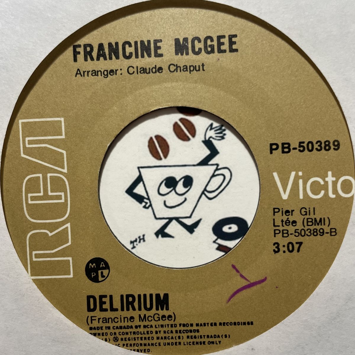 CANADAディスコシンガーFRANCINE MCGEEの1977年RCAカナダリリースSEVEN INCシングルFEELIN GOOD。再発する程でも無いだろうにと昔は不思議に思ってたのですがDANCEクラシックファンにはおなじみLOFT CLASSICの大名曲でございますね!!!妖艶な歌声を披露したFRANCINE MCGEE当人さまには大変申し訳ないのですがワタクシも皆さま同様カップリング曲DELIRIUMがお目当てなのさッ!!!!!お聴きの通りコリャSPRING RAINなんて悠長なモンじゃございません、もう危険領域のゲリラ豪雨でございます!!!ちなみにSEVENプレスはCANADAとUKのみですから侮れません。
