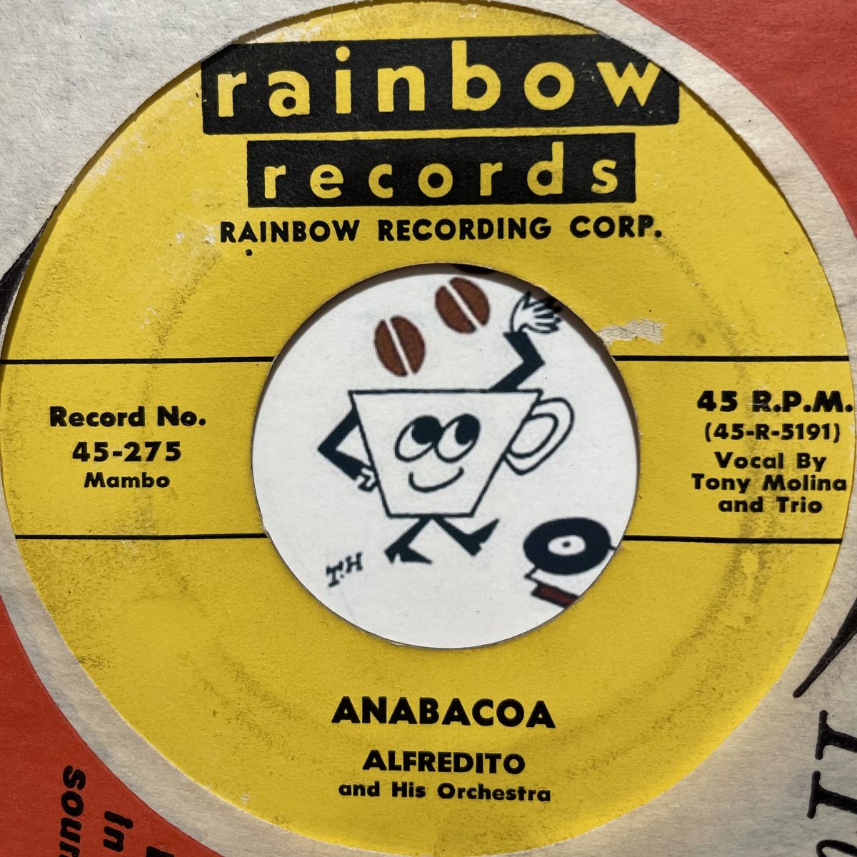 宝石箱コンピJUKE BOX MAMBO収録曲HONEYDRIPPER MAMBOでおなじみUS LATINバンマスALFREDITOことALAN LEVYのウルトラヴィンテージ1955年ウルトラヴィンテージRAINBOWレーベルリリースSEVEN INCシングルANABACOA。コンピJUKE BOX MAMBO収録で広く皆さまにおなじみなのはHONEYDRIPPER MAMBOでマチガイナシ、最も絶景かつRAREなのはTURKISH DELIGHT、ソレを追撃する対抗馬の最難関がコチラANABACOAでございますねッ!!!!!他タイトルを後回しにしてでもTURKISH DELIGHTとコチラANABACOAには迷わず大枚をはたいて下さい。